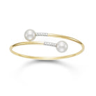 This lovely Sorrento Spring Gold Cuff Bracelet is a 18KT Yellow Gold 9.75MM White Freshwater Pearl Bracelet with 10 Diamonds 0.15 TCW and is apart of our Mastoloni Collection. Our Mastoloni collection of jewelry includes bracelets, rings, necklaces, and earrings.