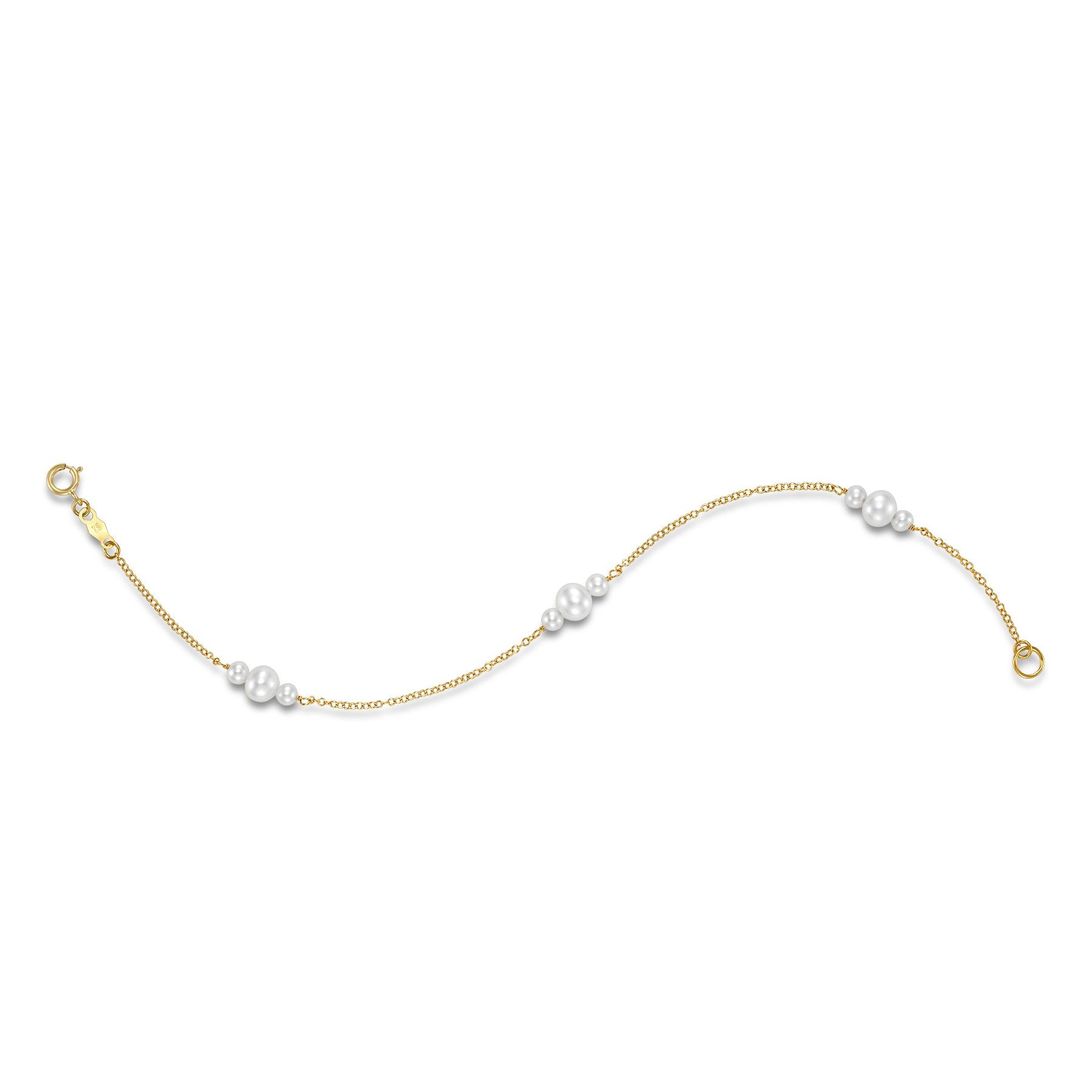 This lovely Three Pearl Station Bracelet is a 14KT Yellow Gold 3.5-5.5MM White Freshwater Pearl Bracelet and is apart of our Mastoloni Collection. Our Mastoloni collection of jewelry includes bracelets, rings, necklaces, and earrings.