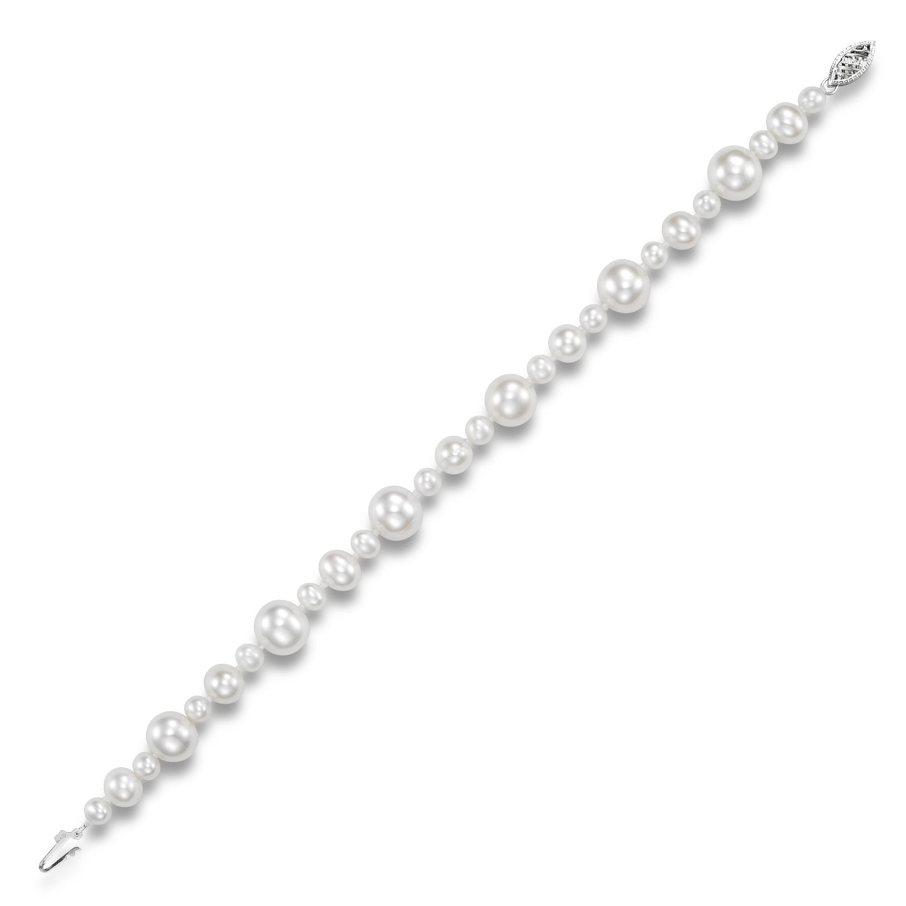 This lovely Popcorn Pearl Strand Bracelet is a 4.5-9.5MM White Freshwater Pearl Strand Bracelet with 14KT White Gold Clasp and is apart of our Mastoloni Collection. Our Mastoloni collection of jewelry includes bracelets, rings, necklaces, and earrings.