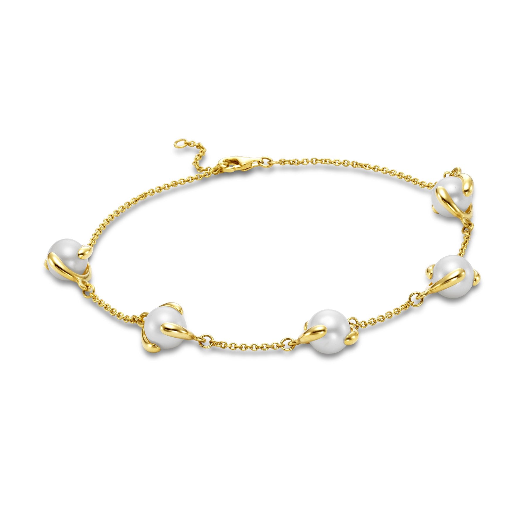 This lovely Daniella Bracelet is a 14KT Yellow Gold 7.5MM White Freshwater Pearl Chain Bracelet and is apart of our Mastoloni Collection. Our Mastoloni collection of jewelry includes bracelets, rings, necklaces, and earrings.