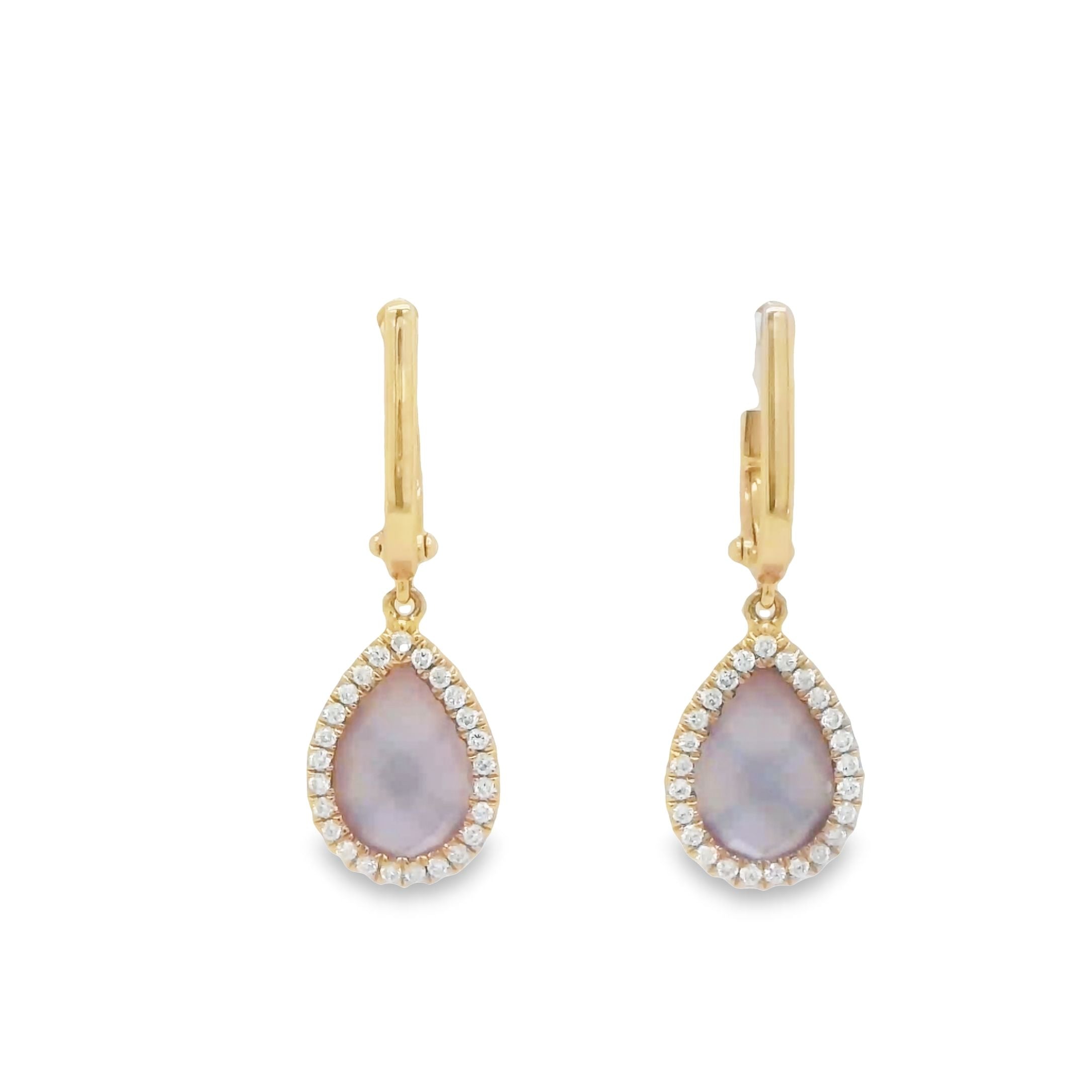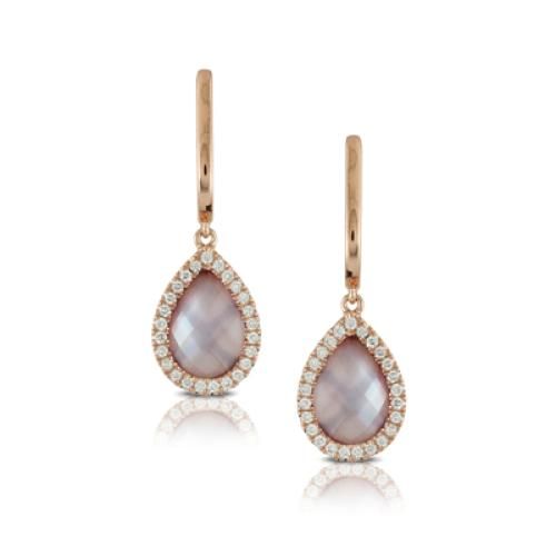 18k Rose Gold Diamond Earring With Amethyst Over Pink Mother Of Pearl