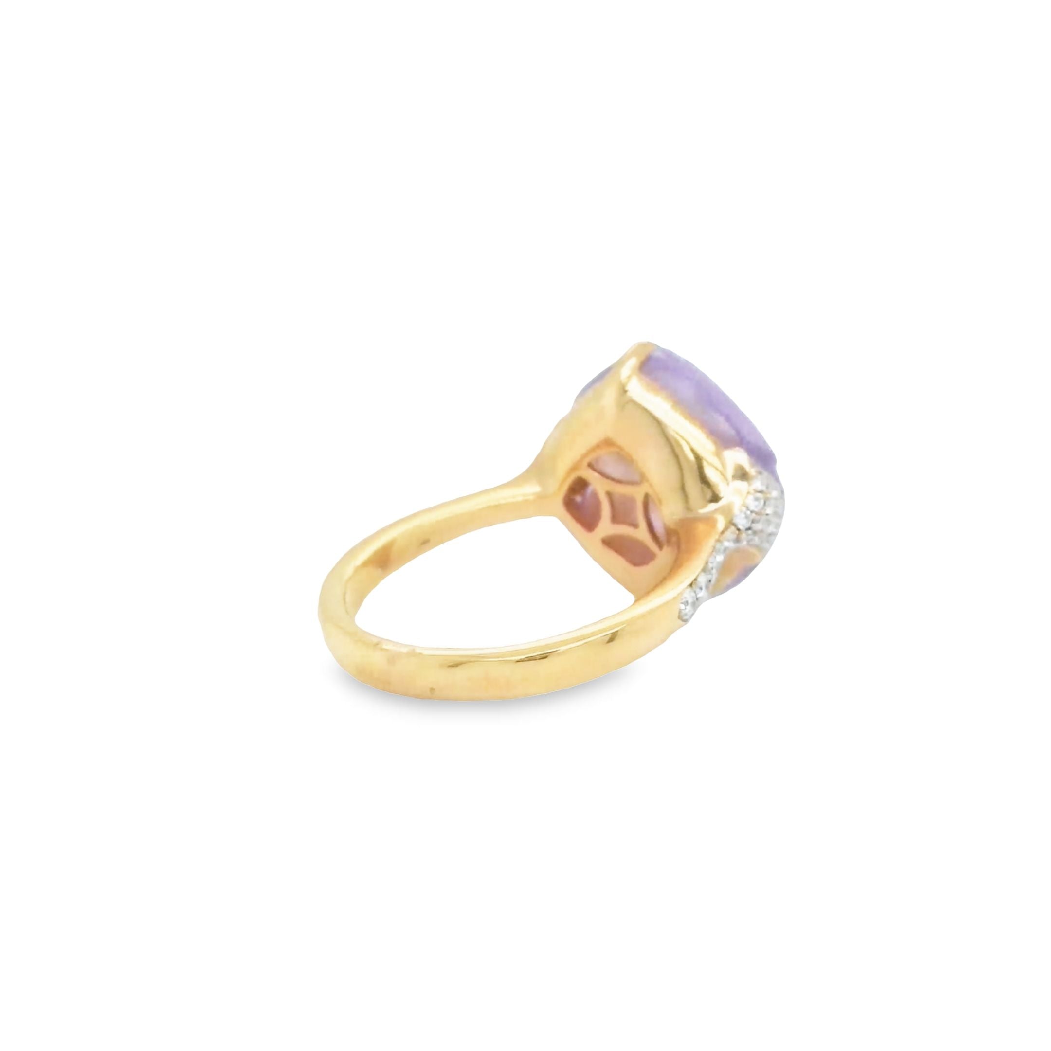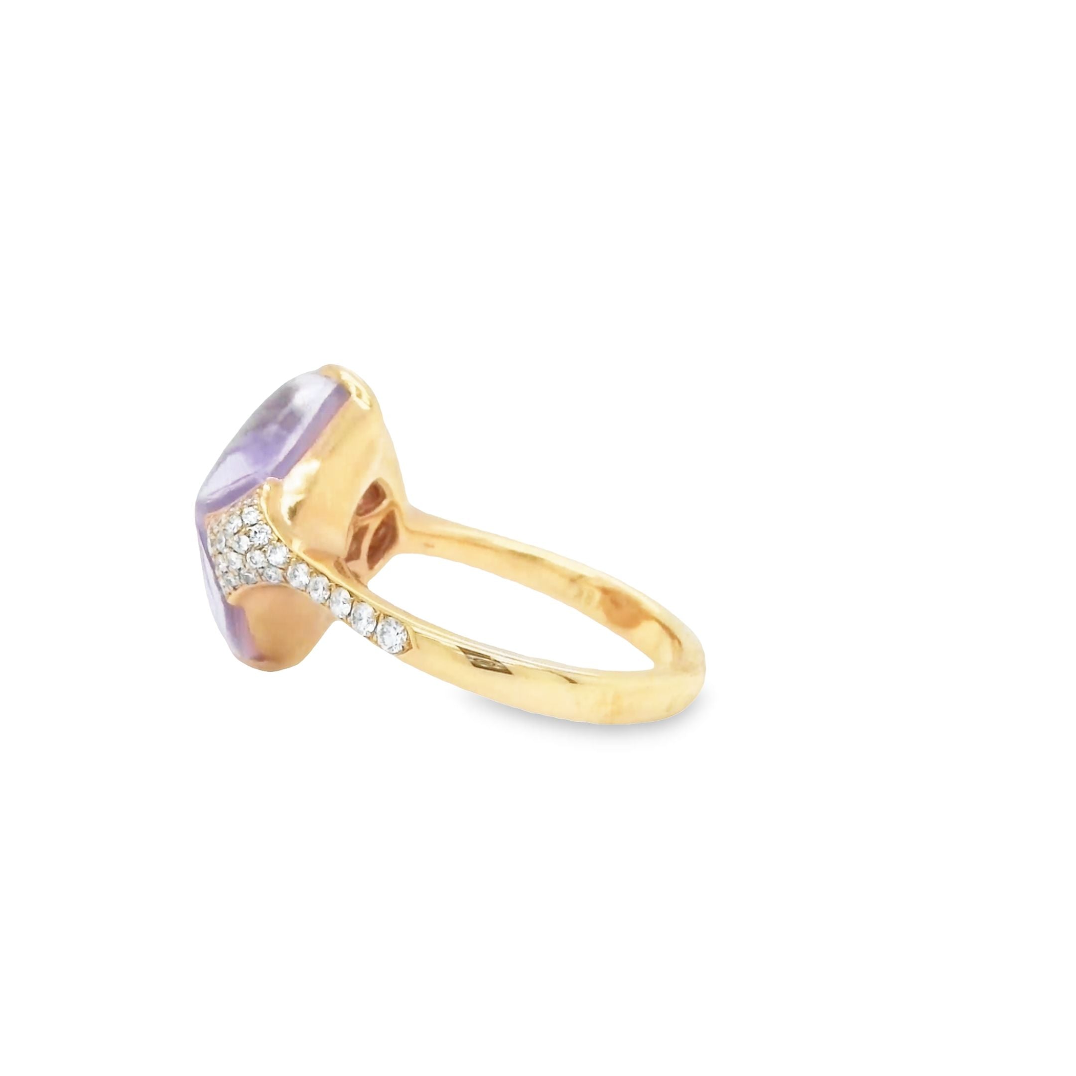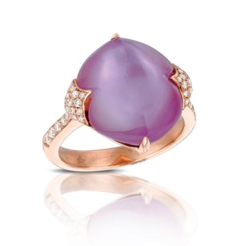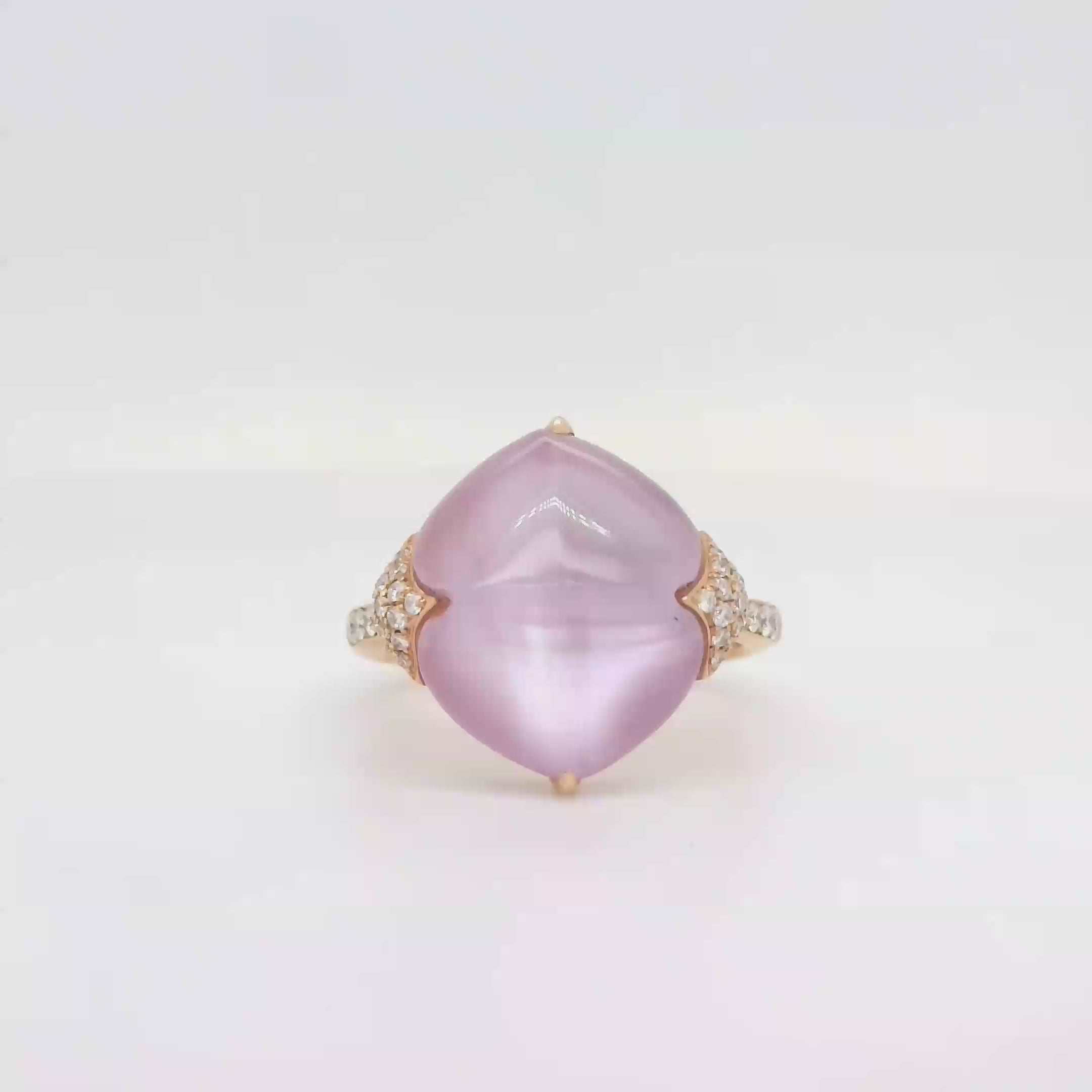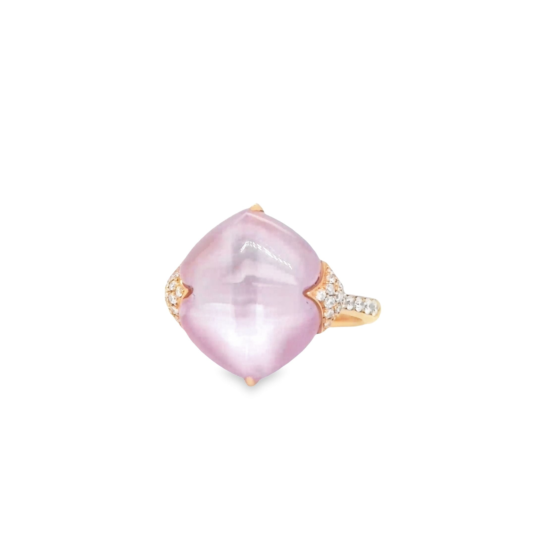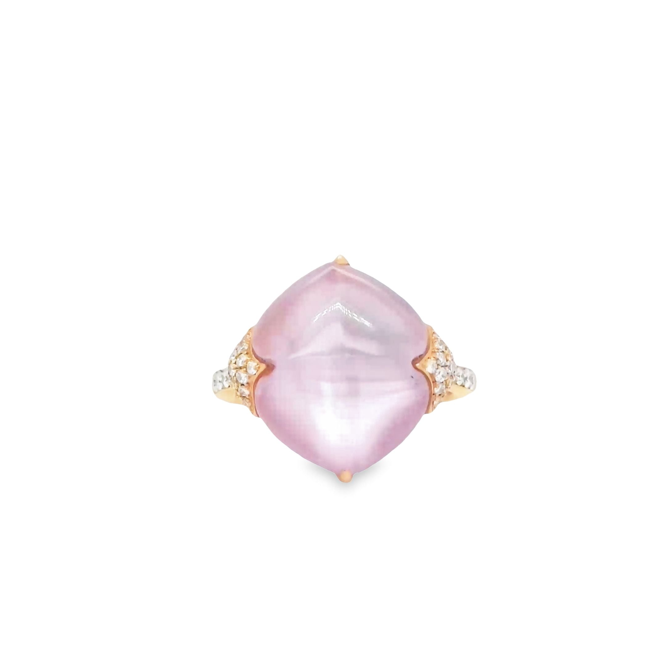 18k Rose Gold Diamond Ring With Amethyst Over Pink Mother Of Pearl