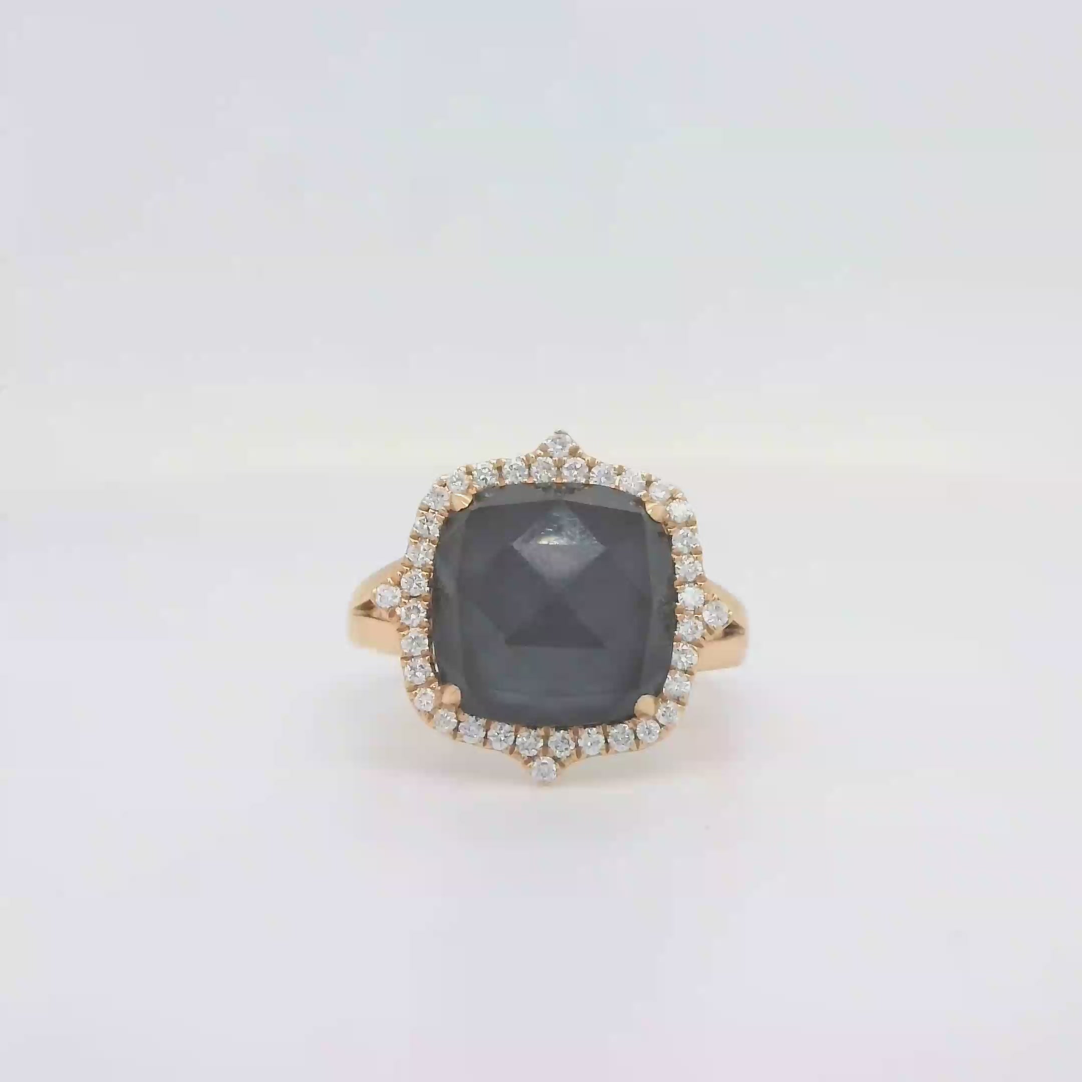 18k Rose Gold Diamond Ring With Clear Quartz Over Hematite