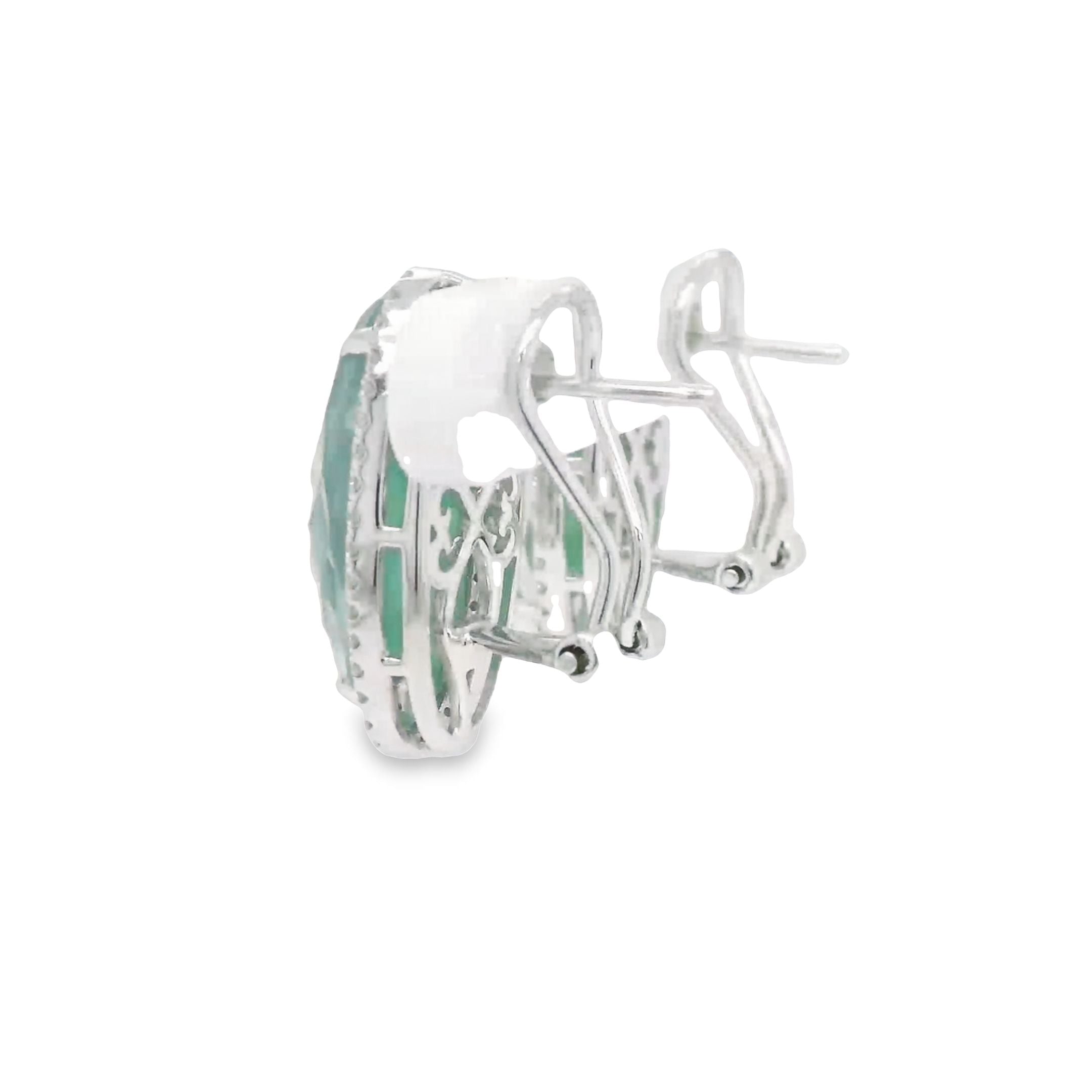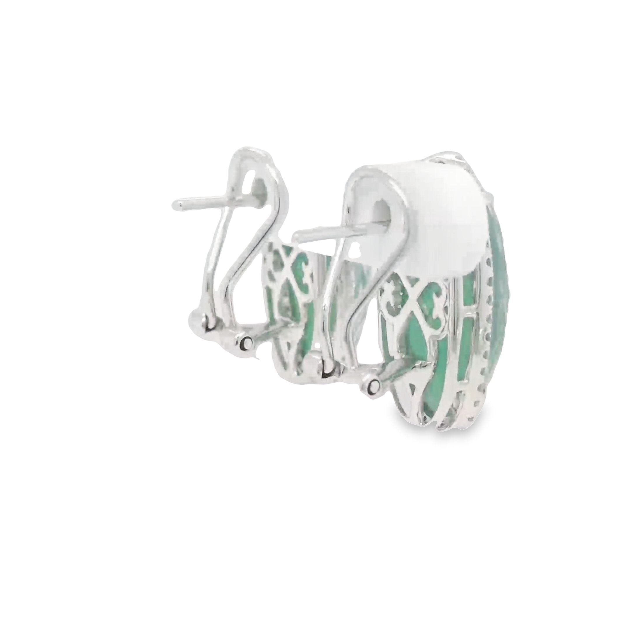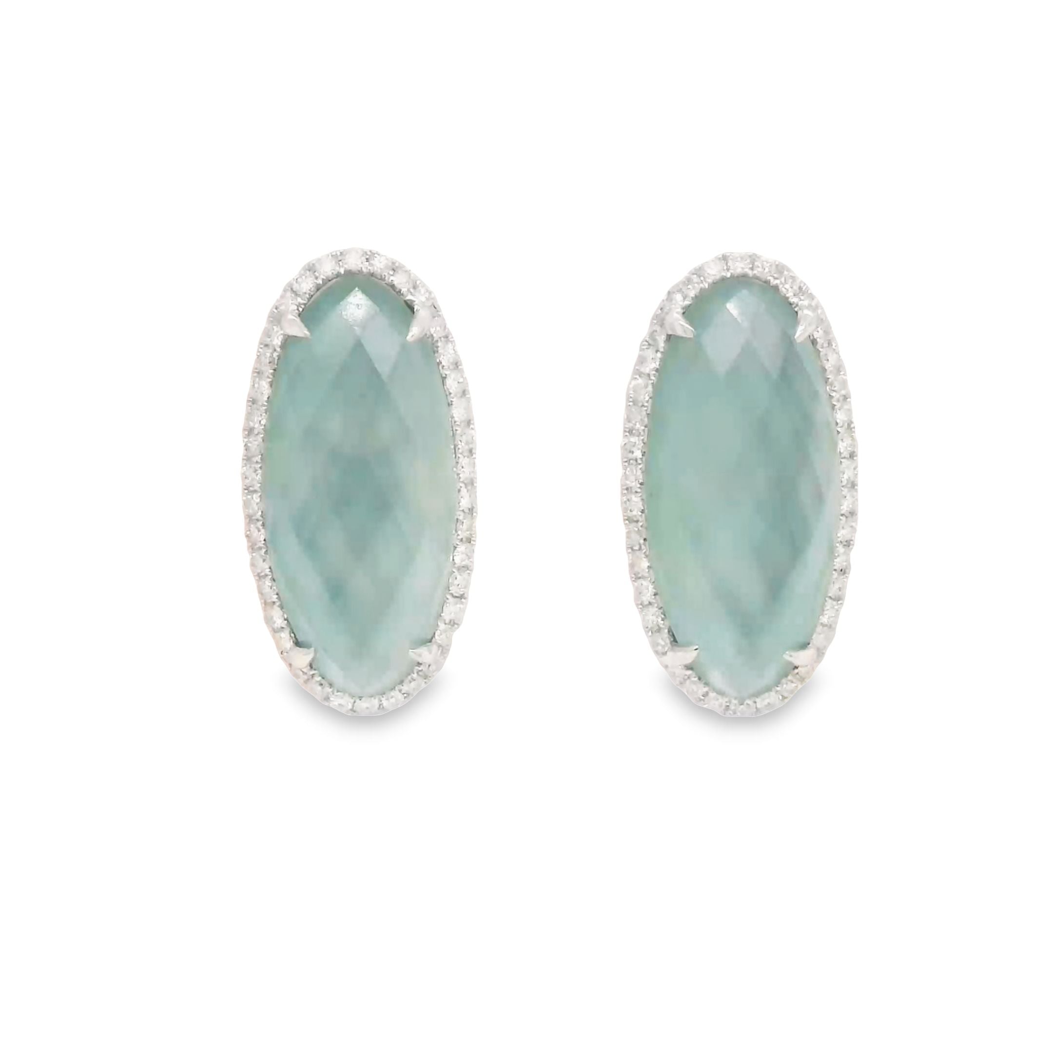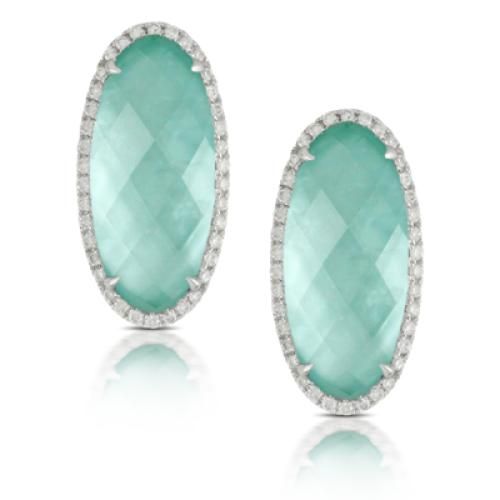 18k White Gold Diamond Earring With White Diamonds And Green Agate With Mother Of Pearl And Amerthyst On Top