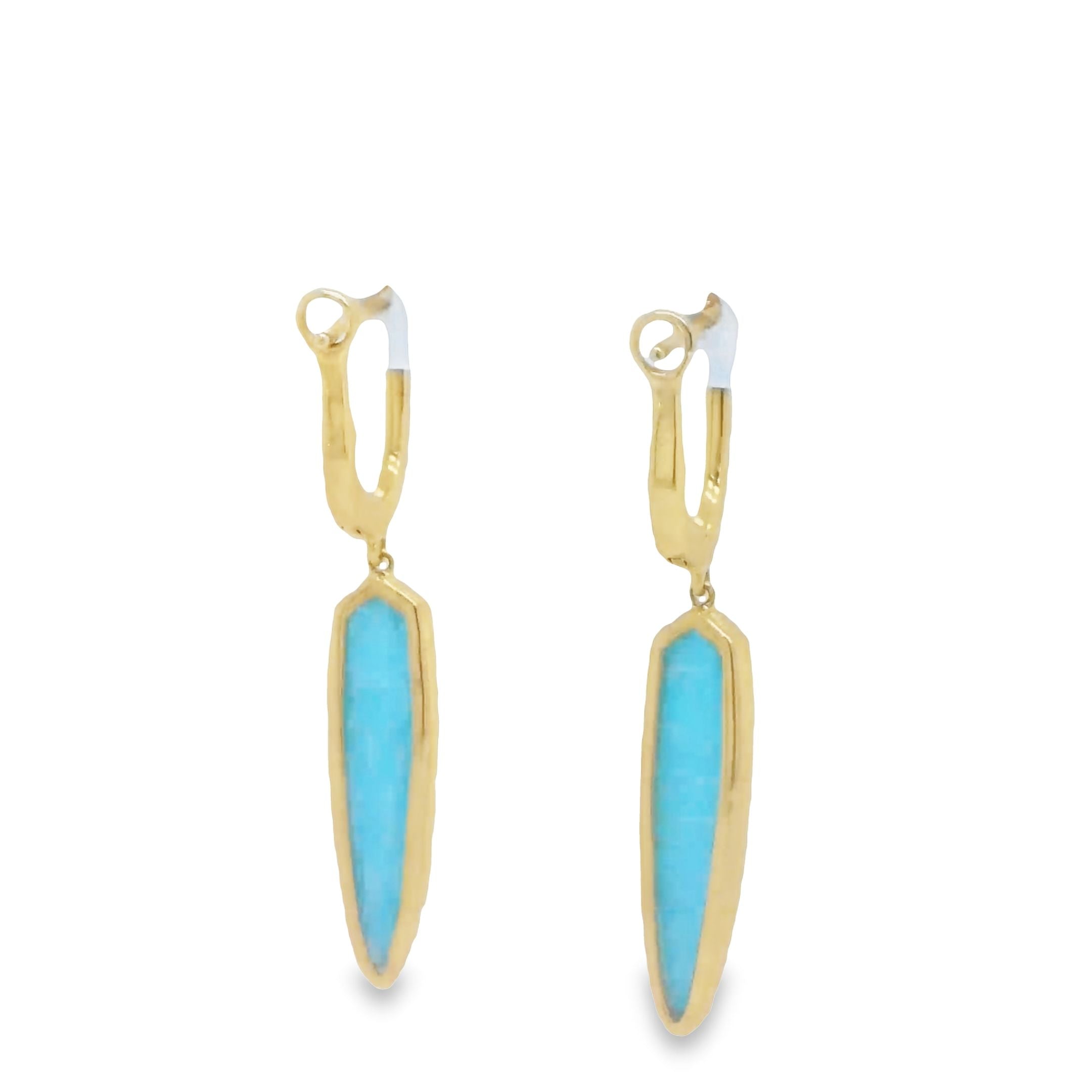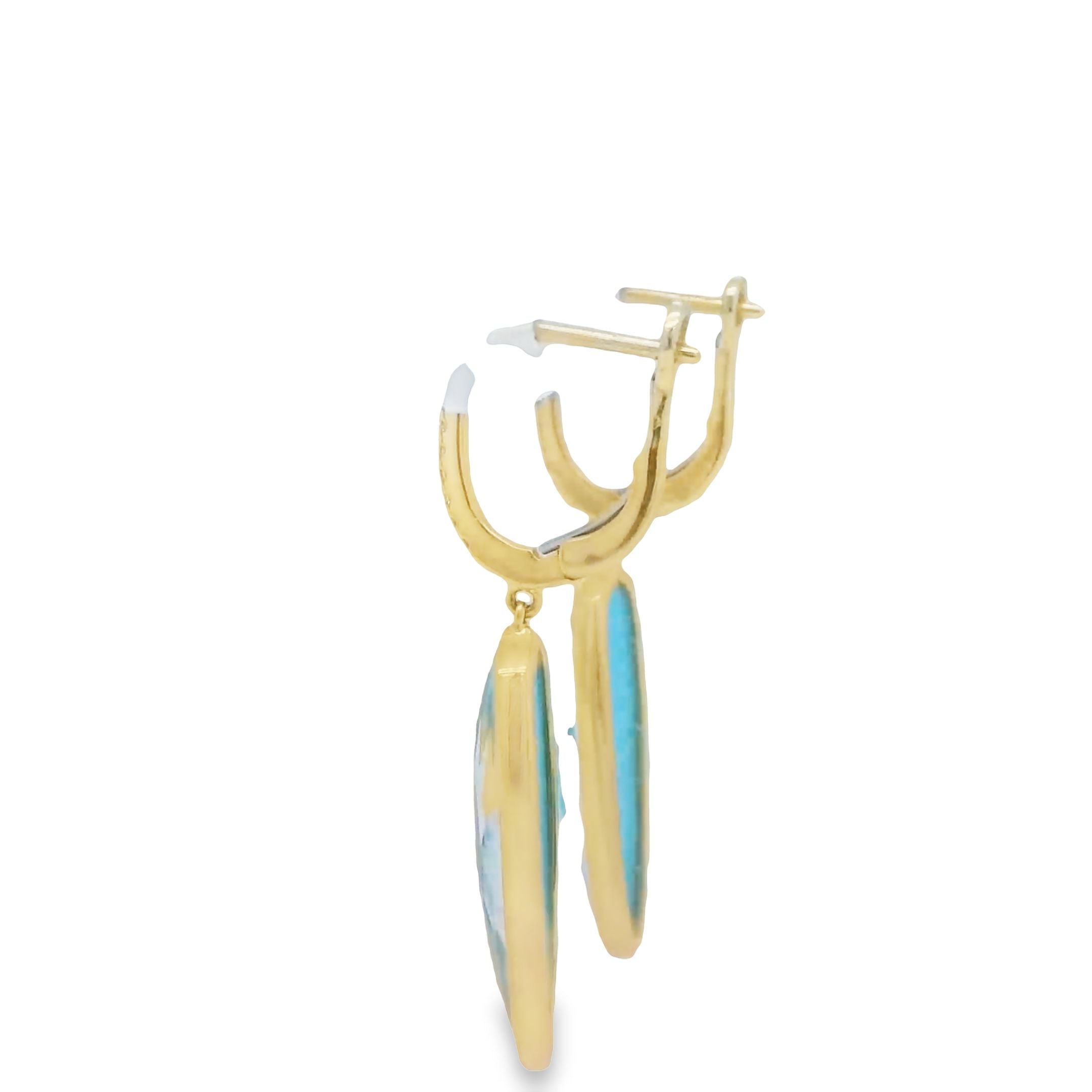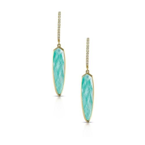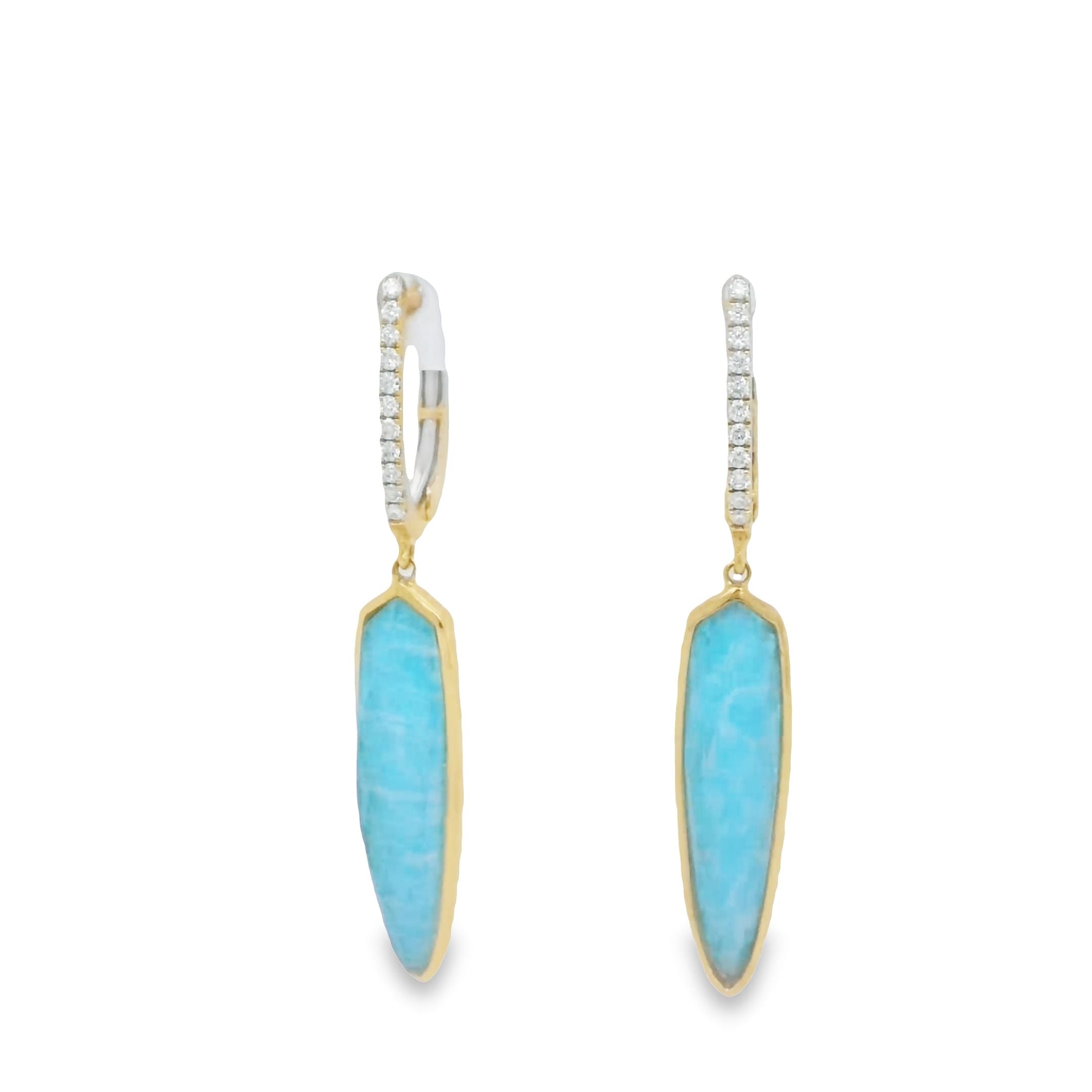 18k Yellow Gold Diamond Earring With Clear Quartz Over Amazonite
