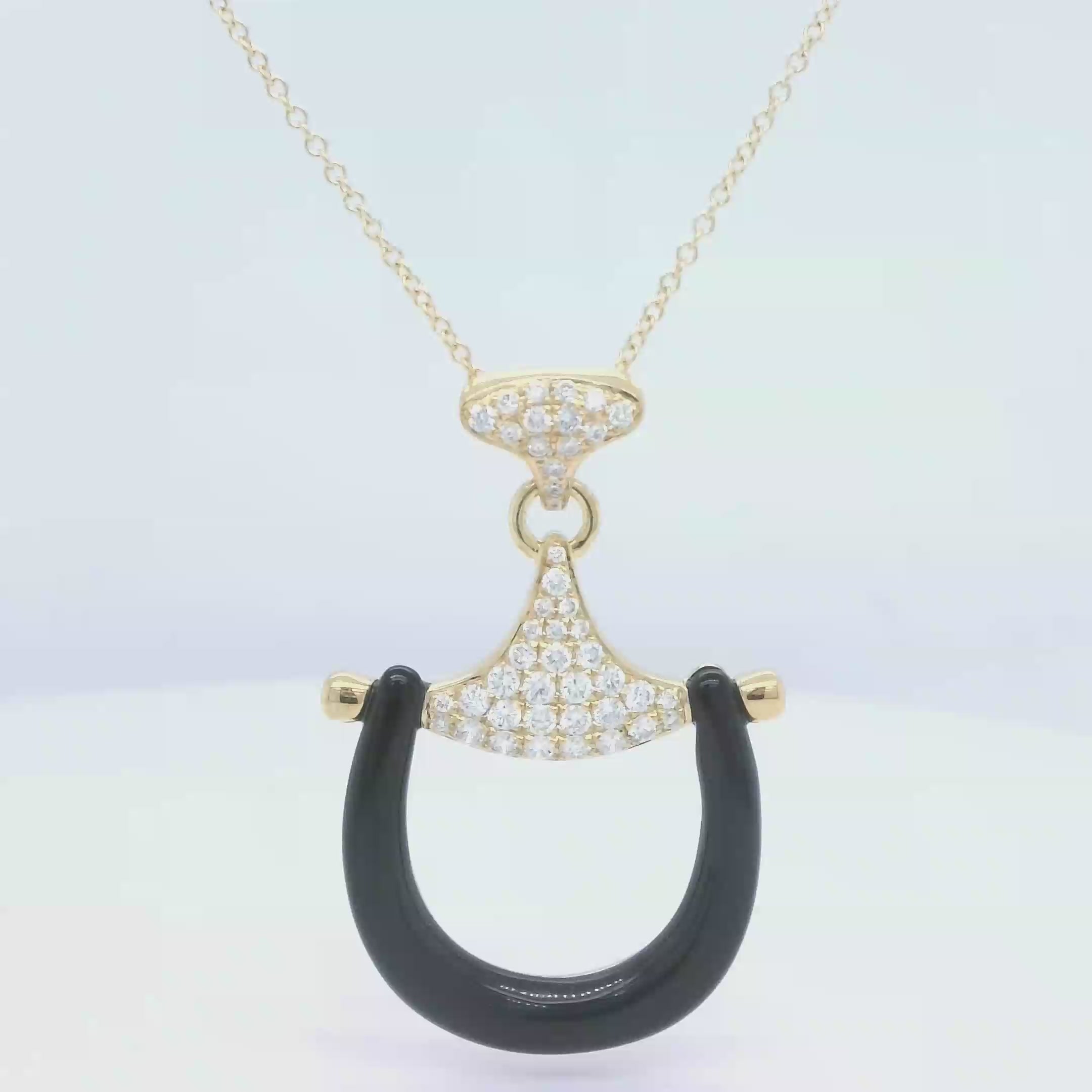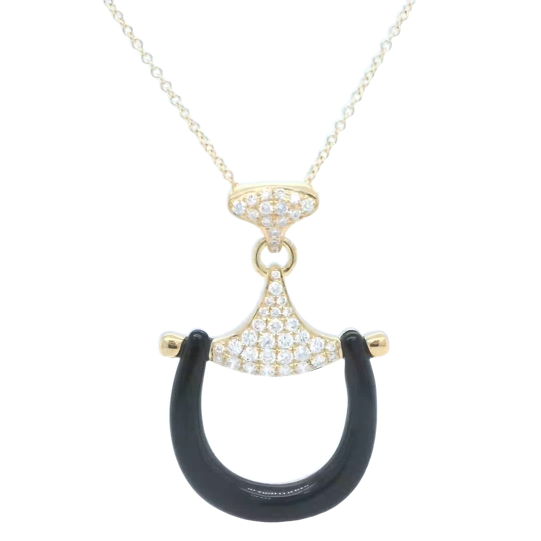 18k Yellow Gold Diamond Pendant With Black Onyx