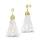This lovely Diamond Tassel Earrings is a 18KT Yellow Gold 2.5-3MM White Freshwater Pearl Tassel Earrings with 110 Diamonds 0.55 TCW and is apart of our Mastoloni Collection. Our Mastoloni collection of jewelry includes bracelets, rings, necklaces, and earrings.