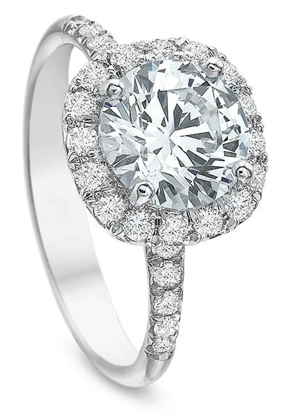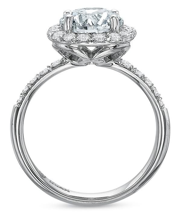 This lovely 18K White Gold Engagement Ring is a Extra Dia Cush Halo & Shank Rd Ctr Semi 0.41Ctw Q2 18W and is apart of our Precision Set collection. Our Precision Set collection of jewelry includes engagement rings and wedding bands.