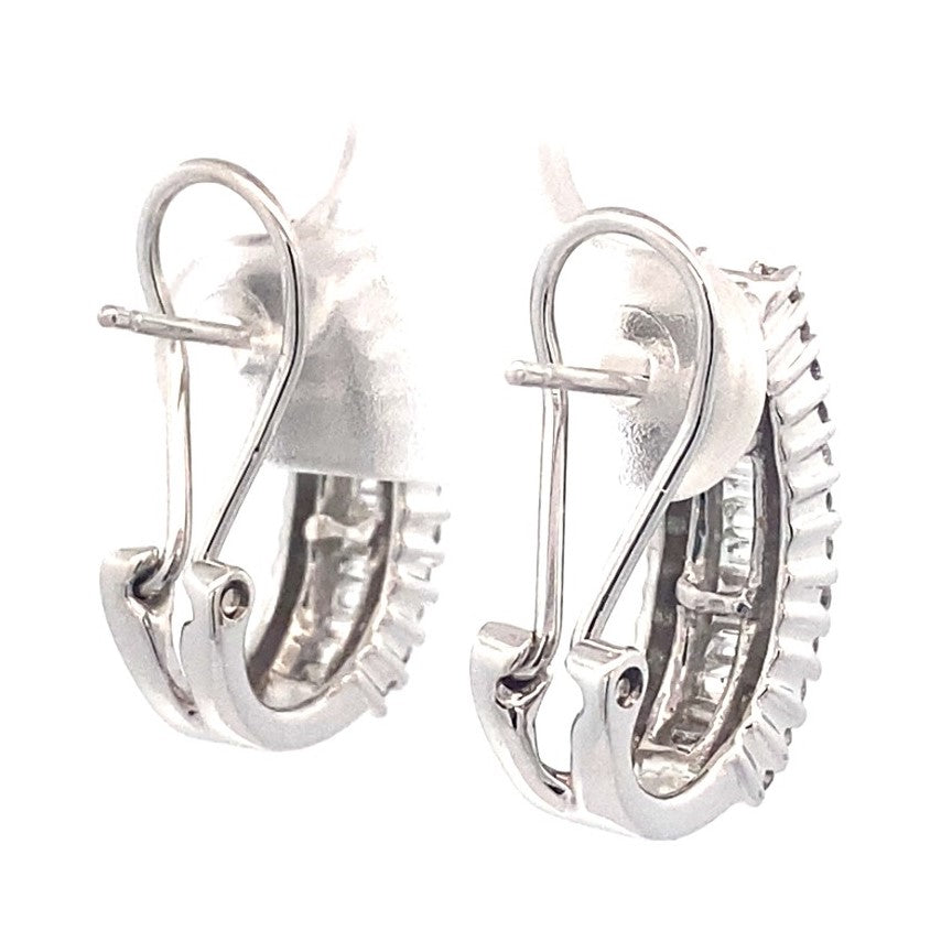14K White Gold Diamond C-Hoop Stud Leverback Earrings