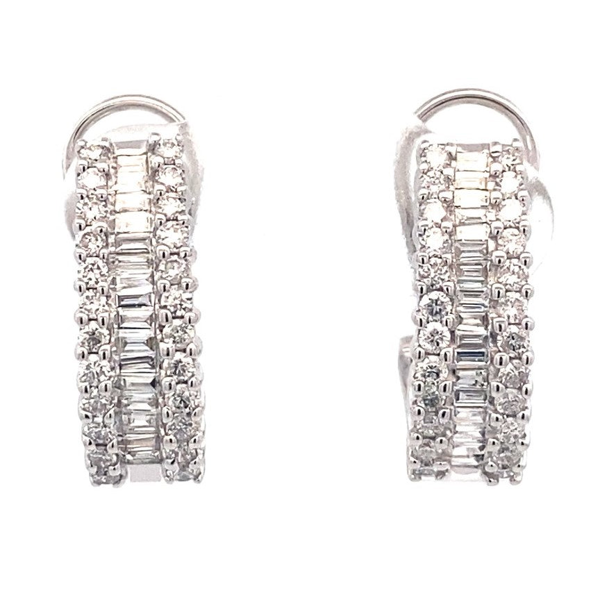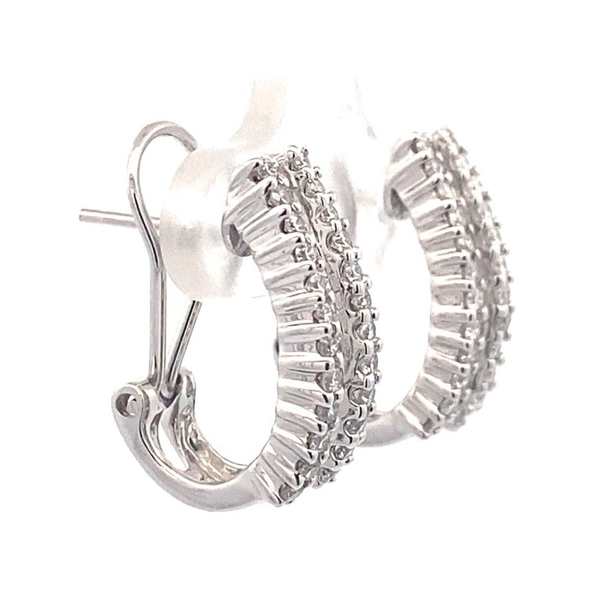 14K WGhite Gold Diamond C-Hoop Stud Leverback Earrings