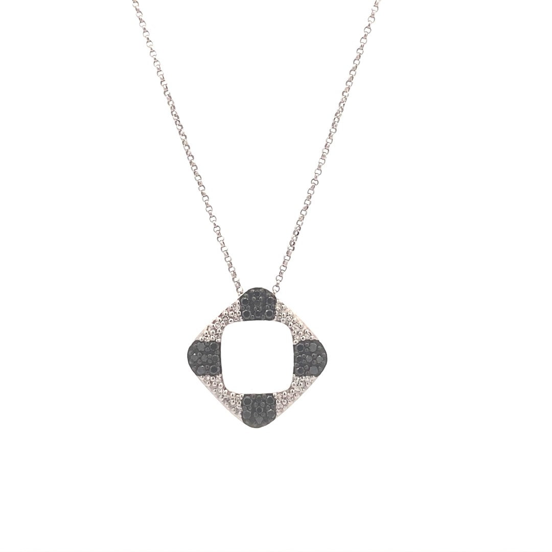 14K White Gold Diamond Open Square Fashion Pendant with 14K White Gold Chain