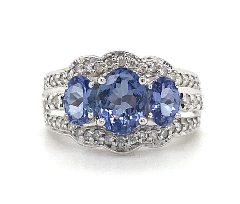 14K White Gold Tanzanite & Diamond Fashion Ring