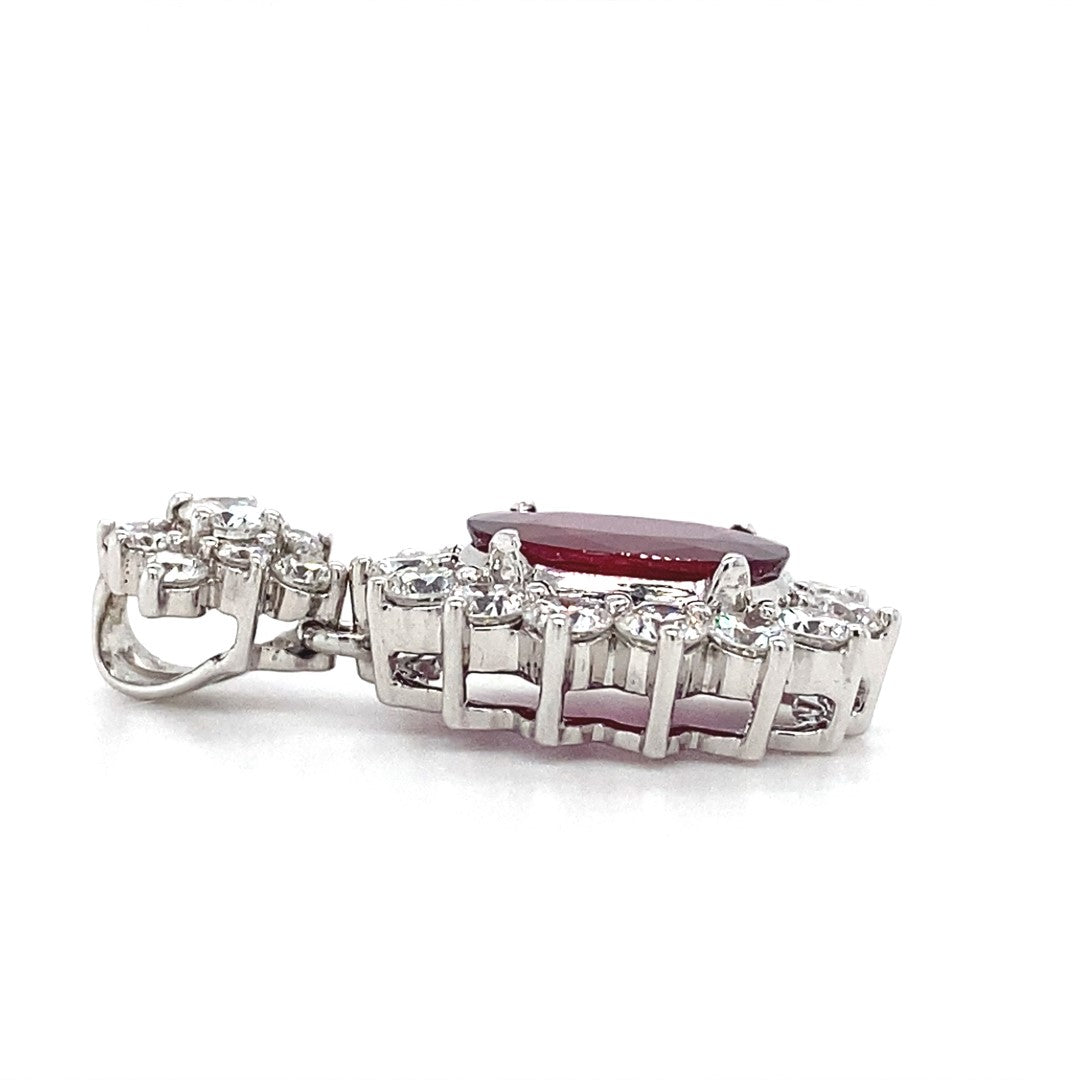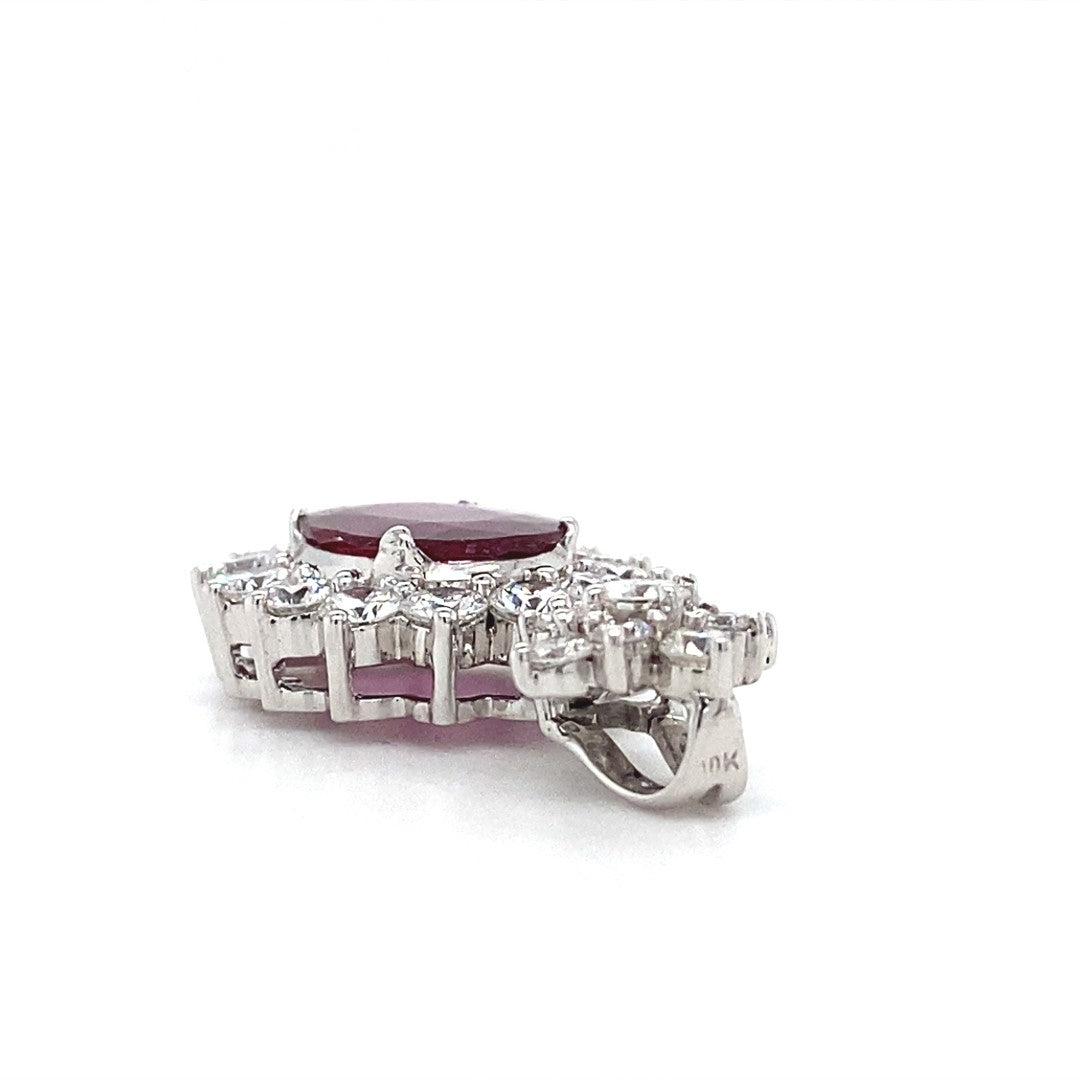 18K White Gold Ruby & Diamond Halo Pendant with Diamond Accented Bail