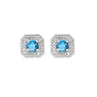 These 10Kt white gold diamond and blue topaz earrings, featuring 44 diamonds with a total weight of 0.09ctw, are a perfect gift for someone who loves timeless sophistication.