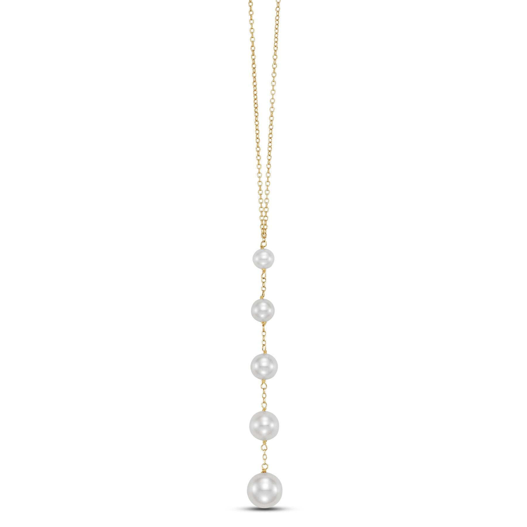 This lovely Graduated Chain Drop Necklace is a 14KT Yellow Gold 4-9MM White Freshwater Pearl Necklace, 17 Inches and is apart of our Mastoloni Collection. Our Mastoloni collection of jewelry includes bracelets, rings, necklaces, and earrings.