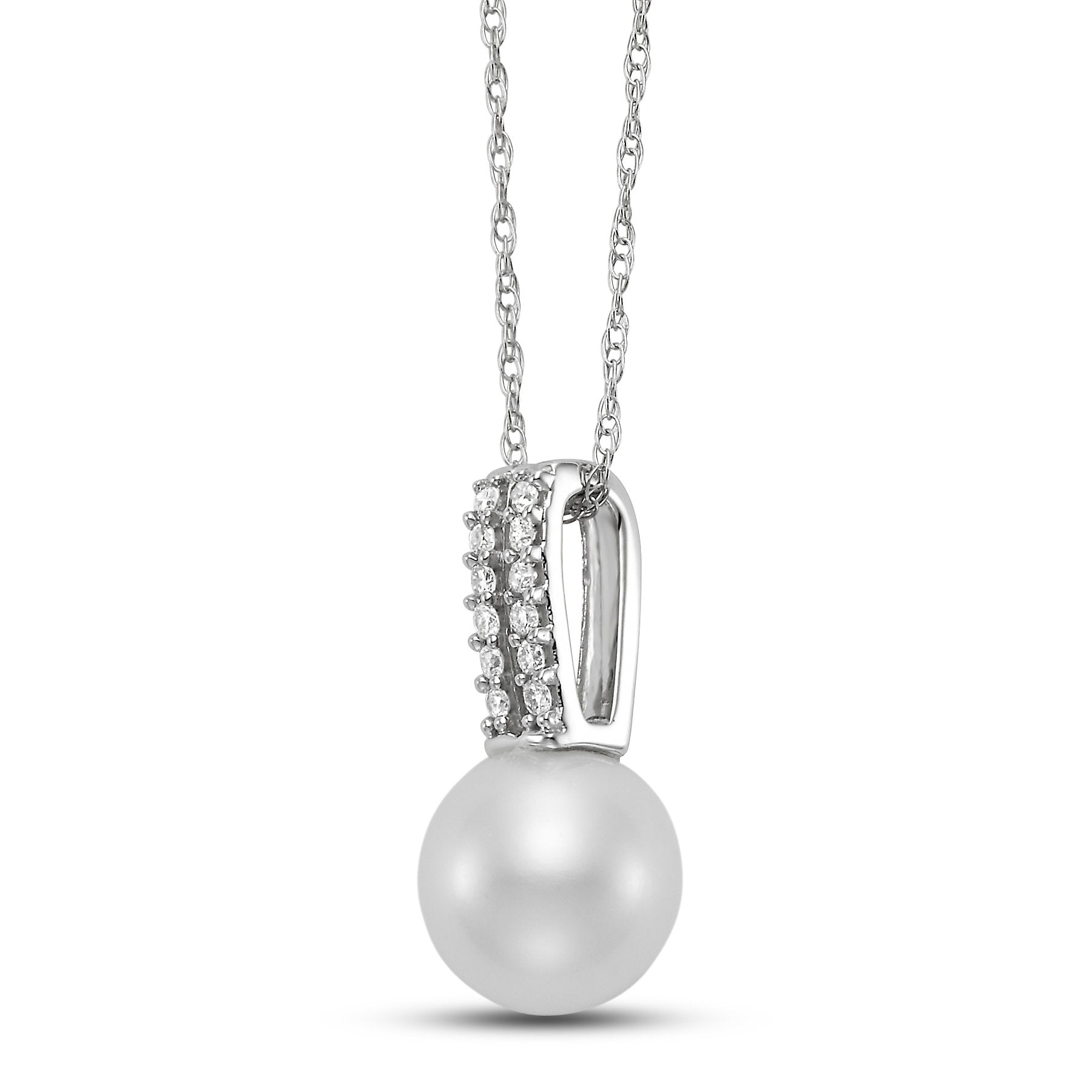 This lovely Linear Drop Pendant is a 14KT White Gold 7.5-8MM White Freshwater Pearl Pendant with 12 Diamonds 0.06 TCW, 18 Inch Chain and is apart of our Mastoloni Collection. Our Mastoloni collection of jewelry includes bracelets, rings, necklaces, and earrings.
