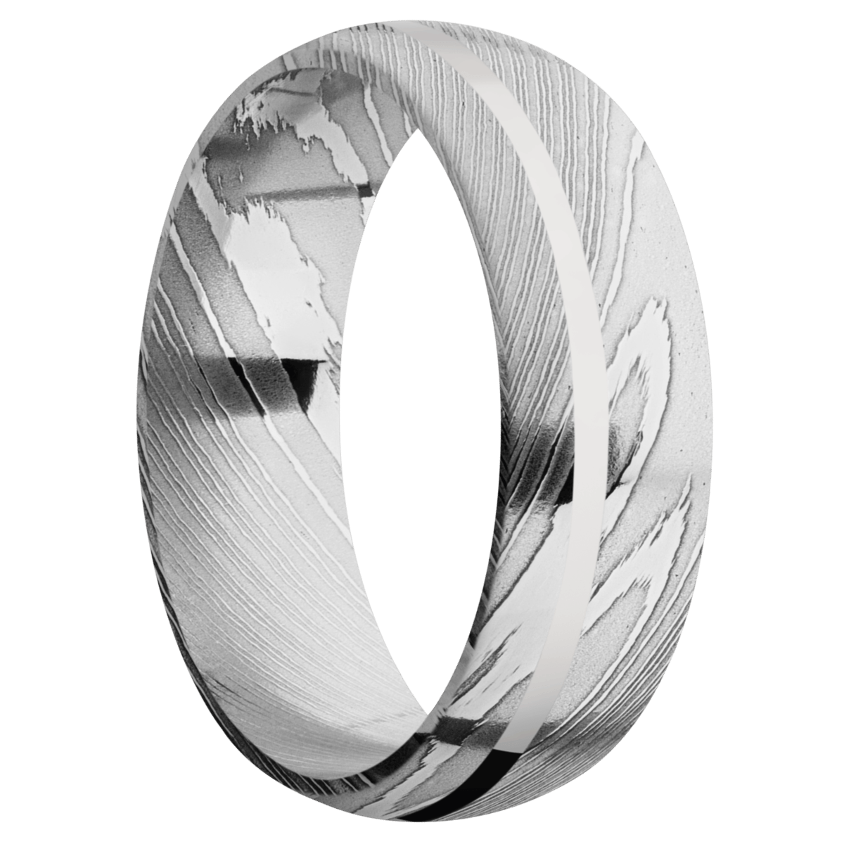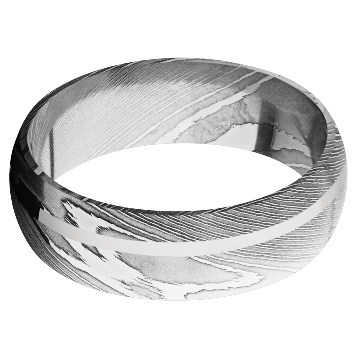Product Description: 7mm Damascus Steel Band W1mm Off Center 14Kwg.