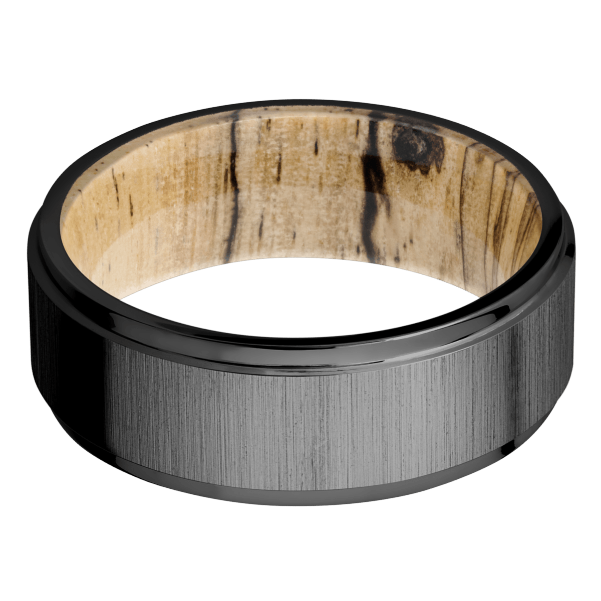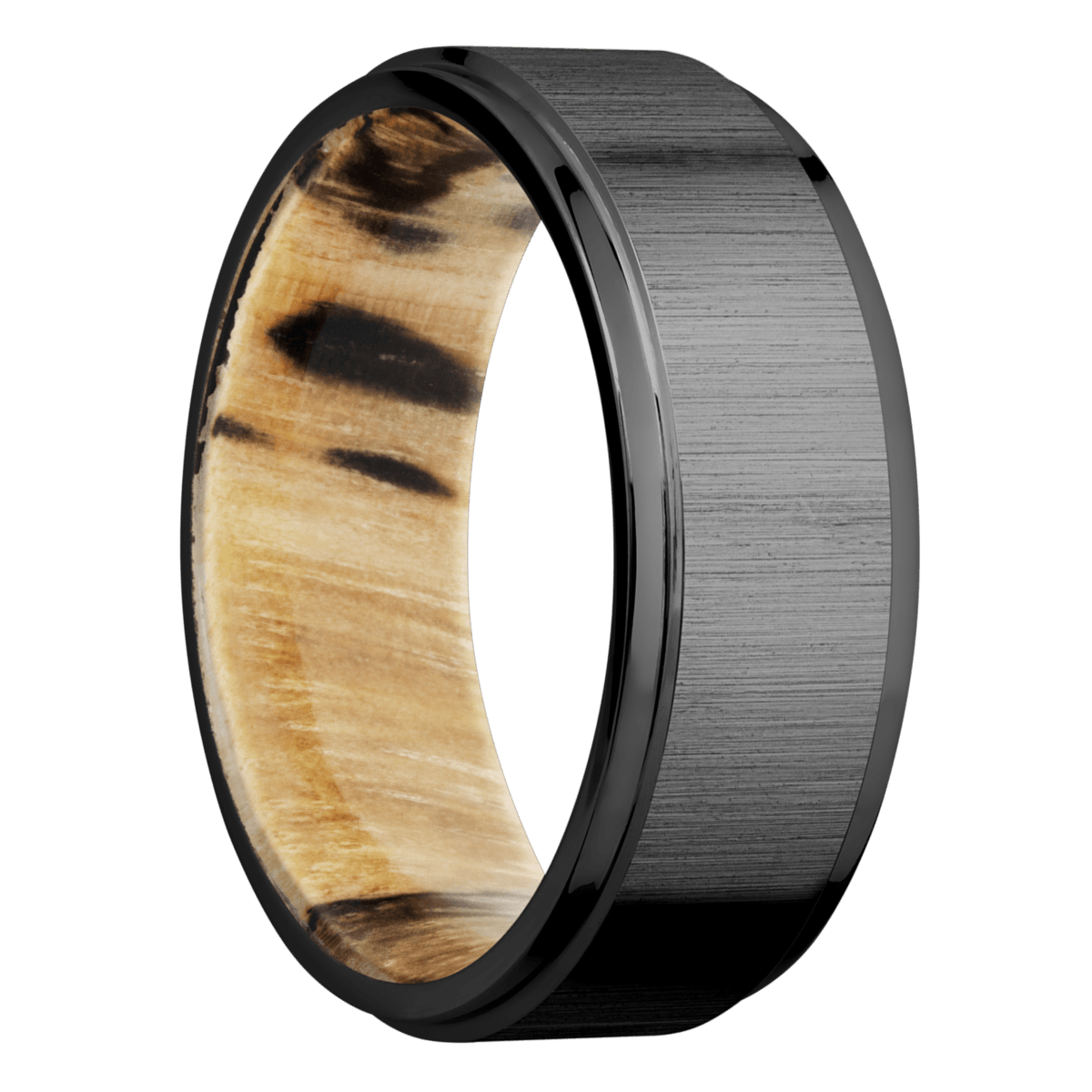 Product Description: 8mm Black Zirconium Band With Genuine Spalted Tamarind Sleeve.