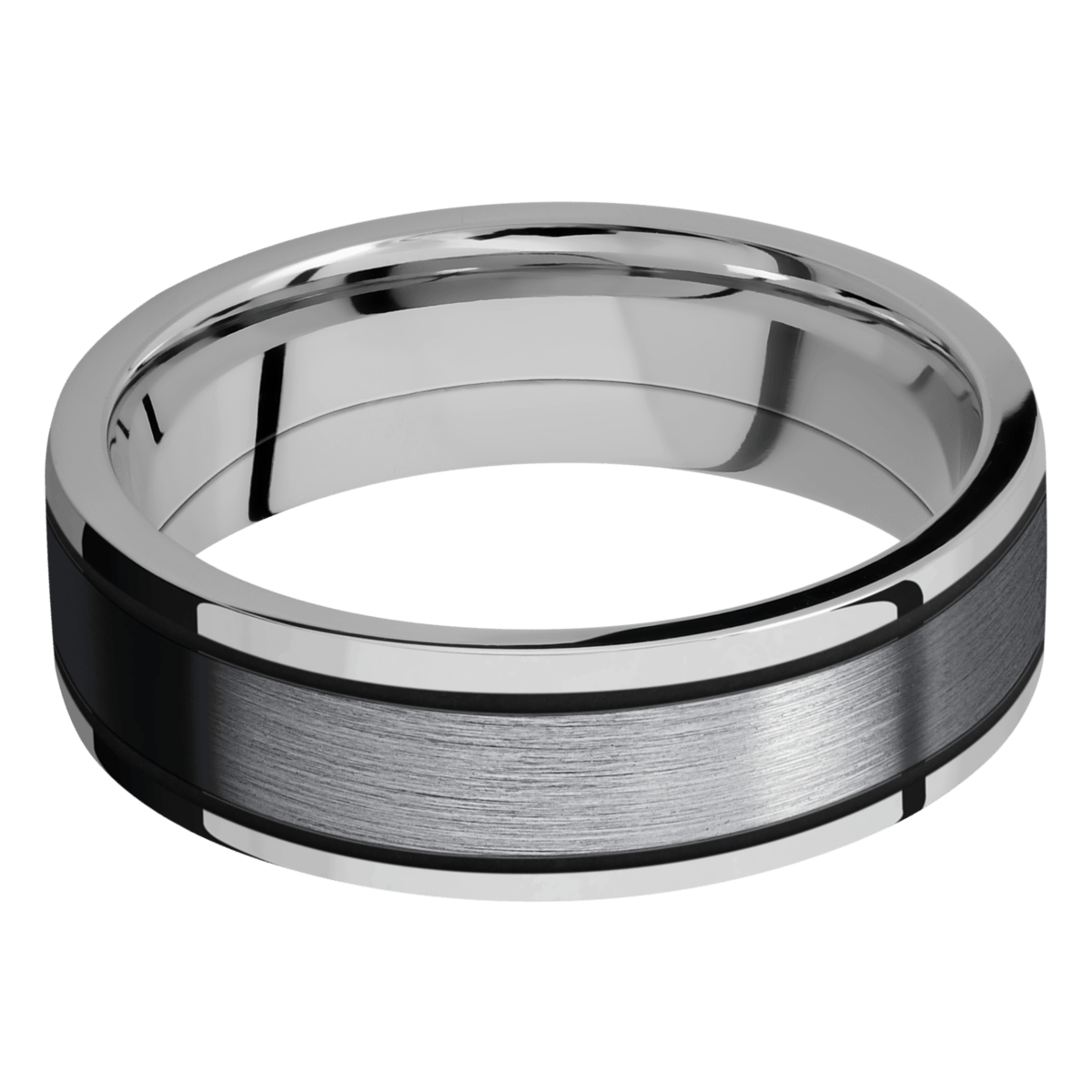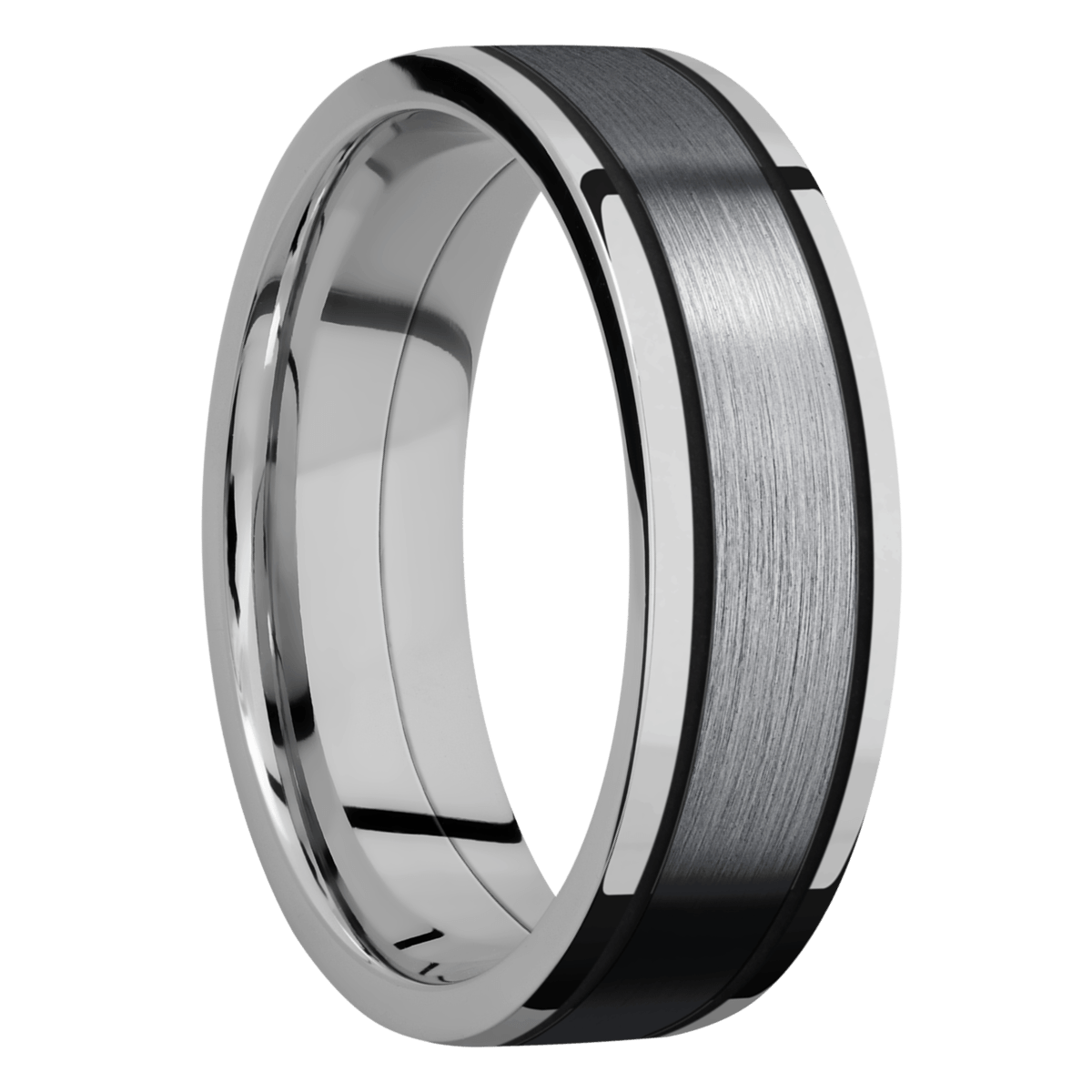 Product Description: 7mm Titanium Band With 4mm Tantalum And Gloss Black Cerakote Accents.