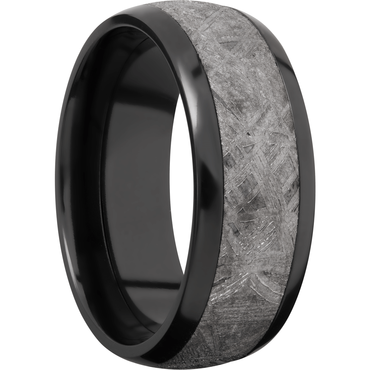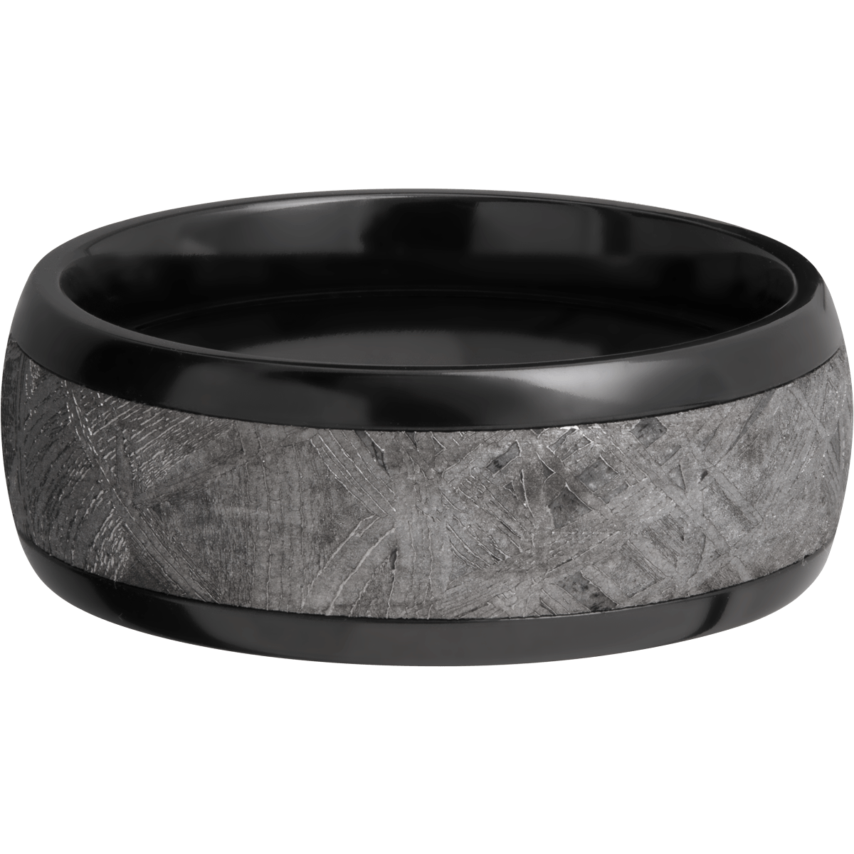 Product Description: 8mm Black Zirconium Band With 5mm Genuine Gibeon Meteorite.