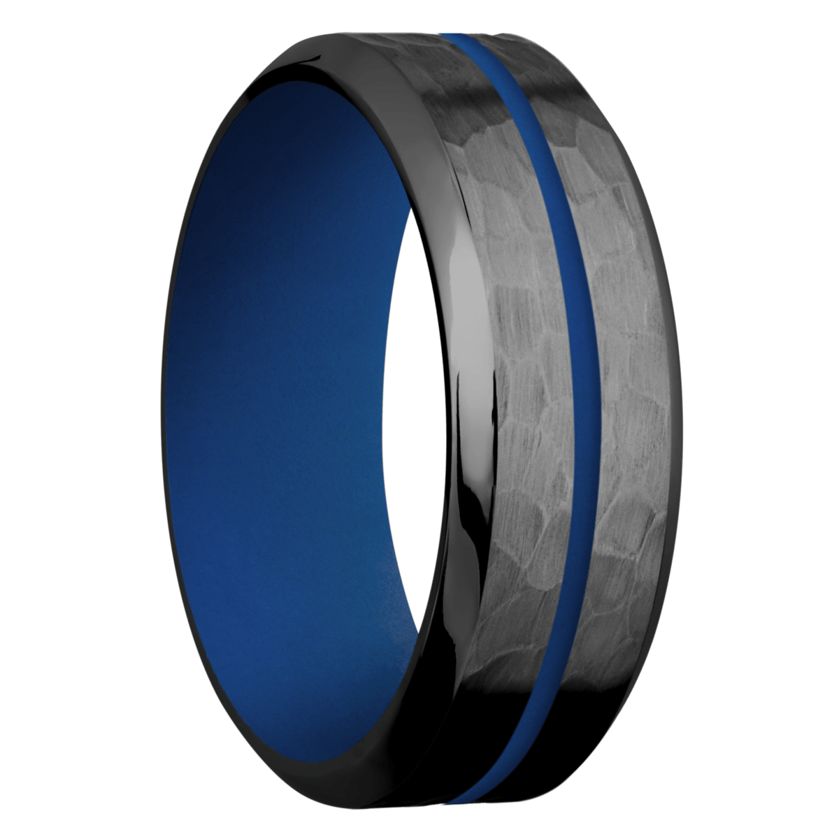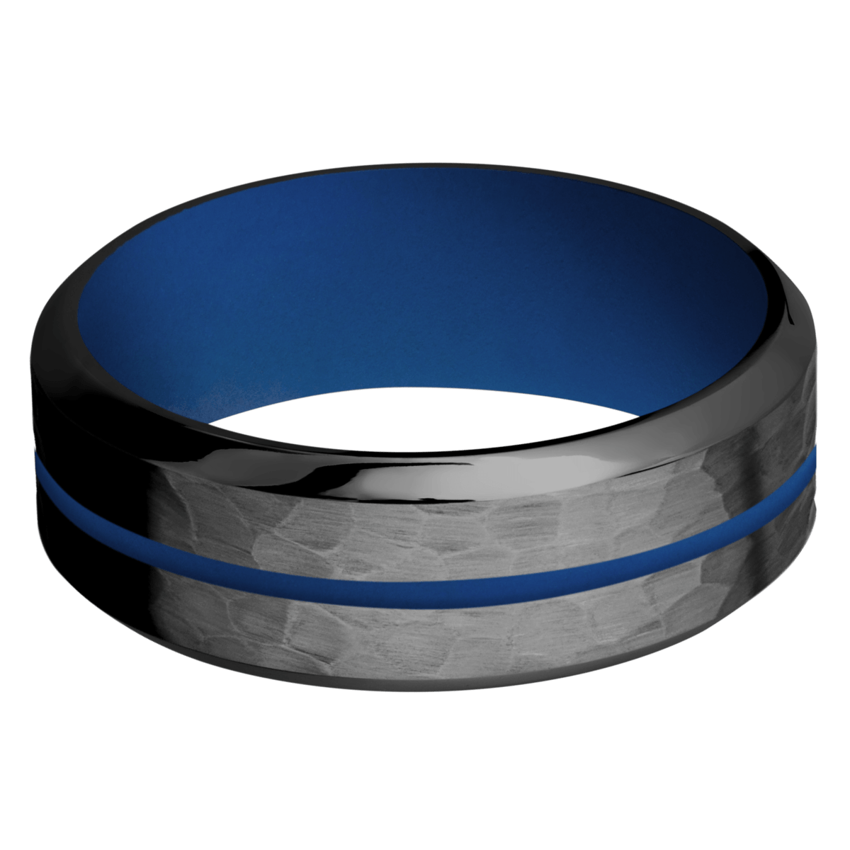 Product Description: 8mm Black Zirconium Band With Royal Blue Inlay & Sleeve.