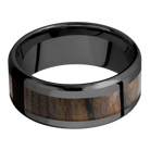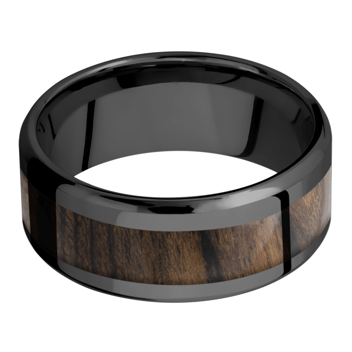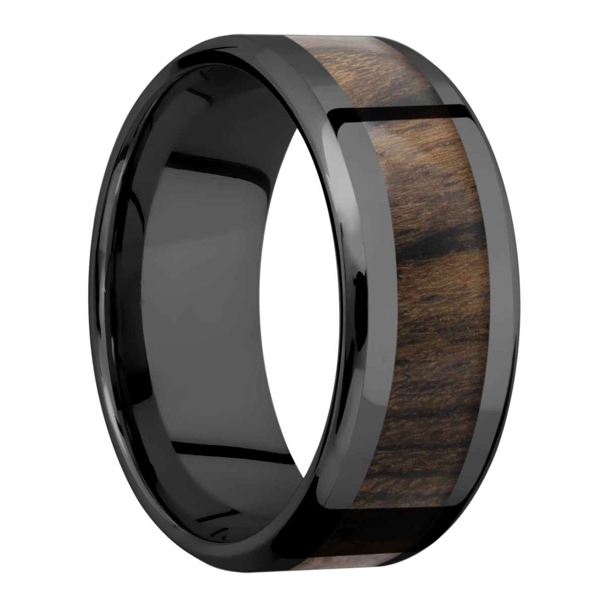 Product Description: 9mm Black Zirconium Band With 5mm Genuine Ziricote.