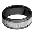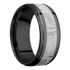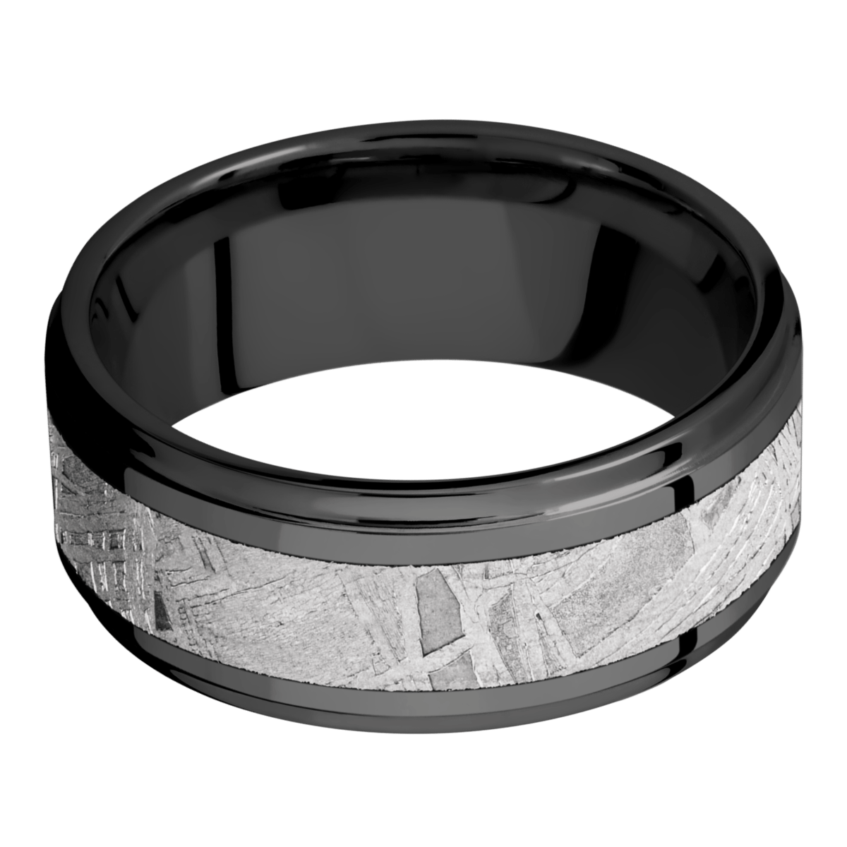 Product Description: 9mm Black Zirconium Band With 5mm Genuine Gibeon Meteorite.