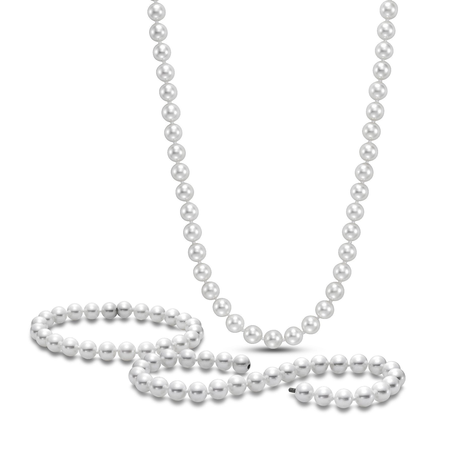 This lovely Akoya Pearl Game is a 7-7.5MM White Akoya Pearl Convertible Necklace with 3 Mystery/Hidden Clasps, 35 Inches (7 Inch Bracelet, 9.5 Inch Extender, 18.5 Inch Necklace) and is apart of our Mastoloni Collection. Our Mastoloni collection of jewelry includes bracelets, rings, necklaces, and earrings.