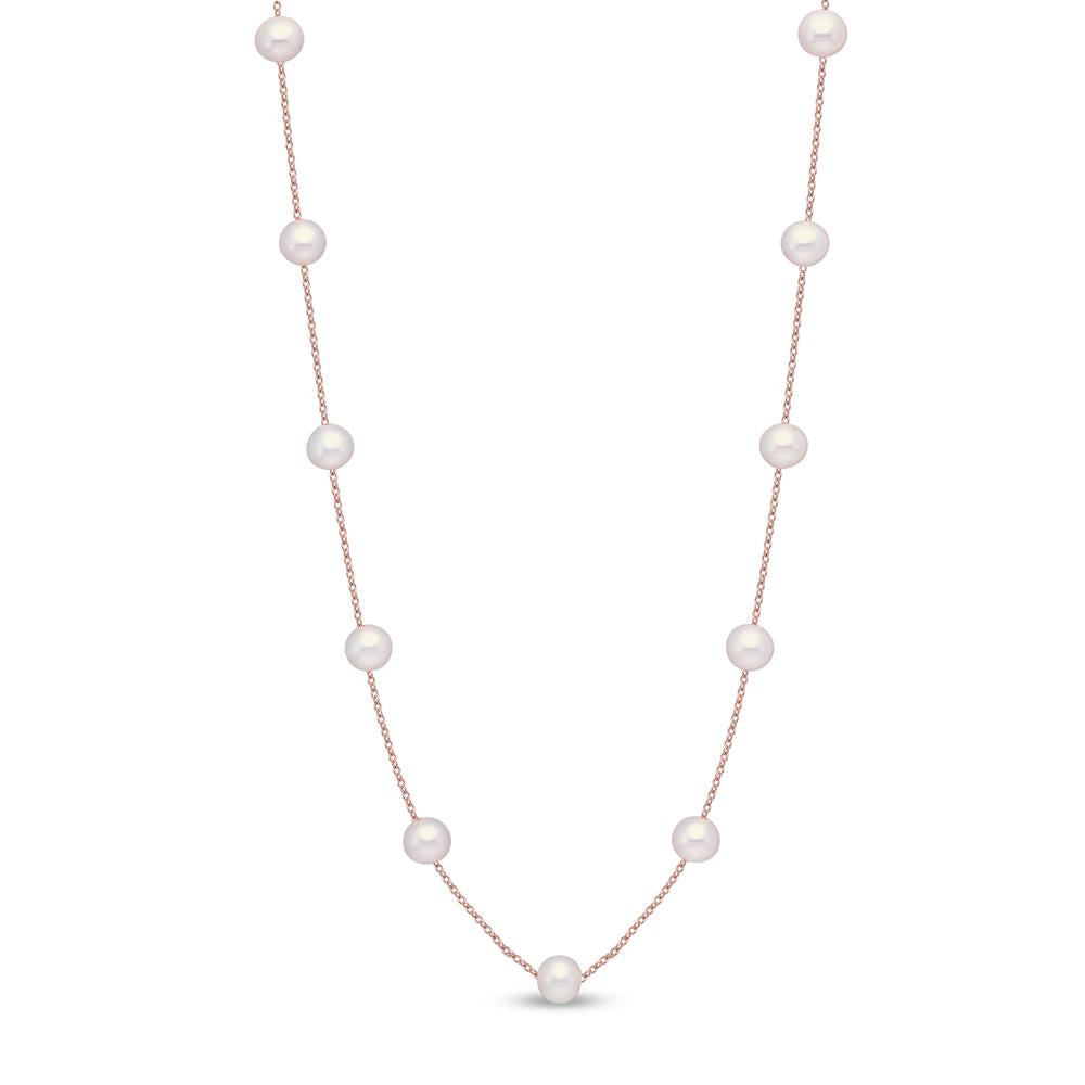 This lovely Rose Gold Tin Cup Pearl Necklace is a 14KT Rose Gold 5.5-6MM White Freshwater Pearl Tin Cup Necklace, 17 Inches and is apart of our Mastoloni Collection. Our Mastoloni collection of jewelry includes bracelets, rings, necklaces, and earrings.
