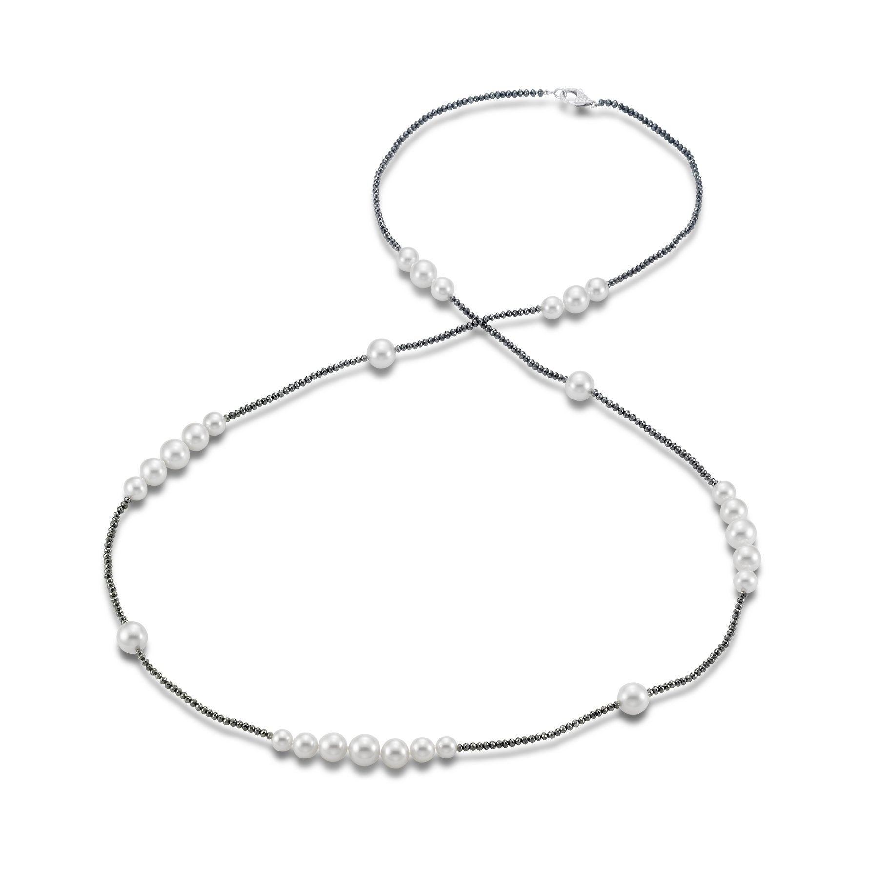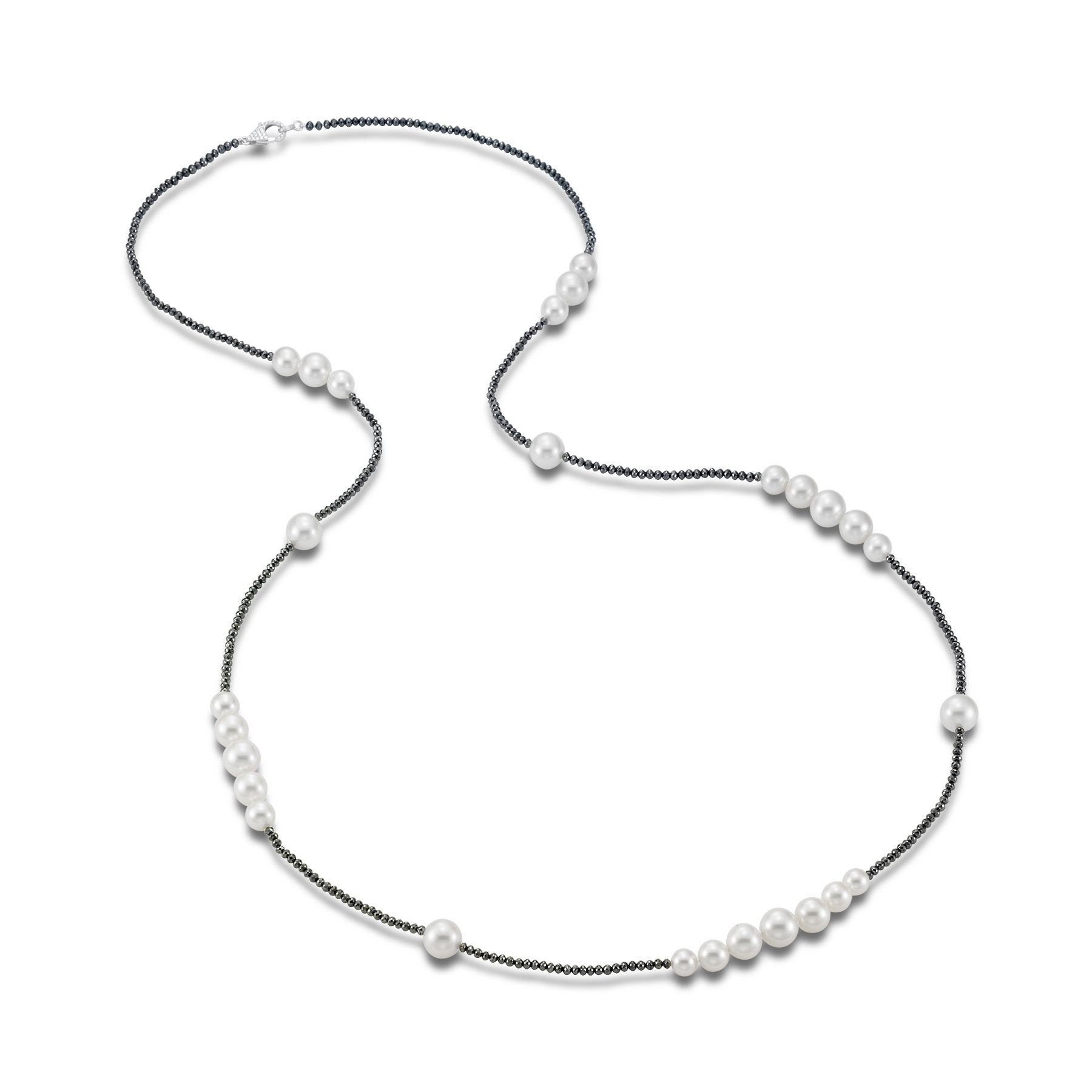This lovely Ice Dana Necklace II is a 18KT White Gold 8-11.5MM White Freshwater Pearl Necklace with Black & White Diamonds 65.39 TCW, 42 Inches and is apart of our Mastoloni Collection. Our Mastoloni collection of jewelry includes bracelets, rings, necklaces, and earrings.