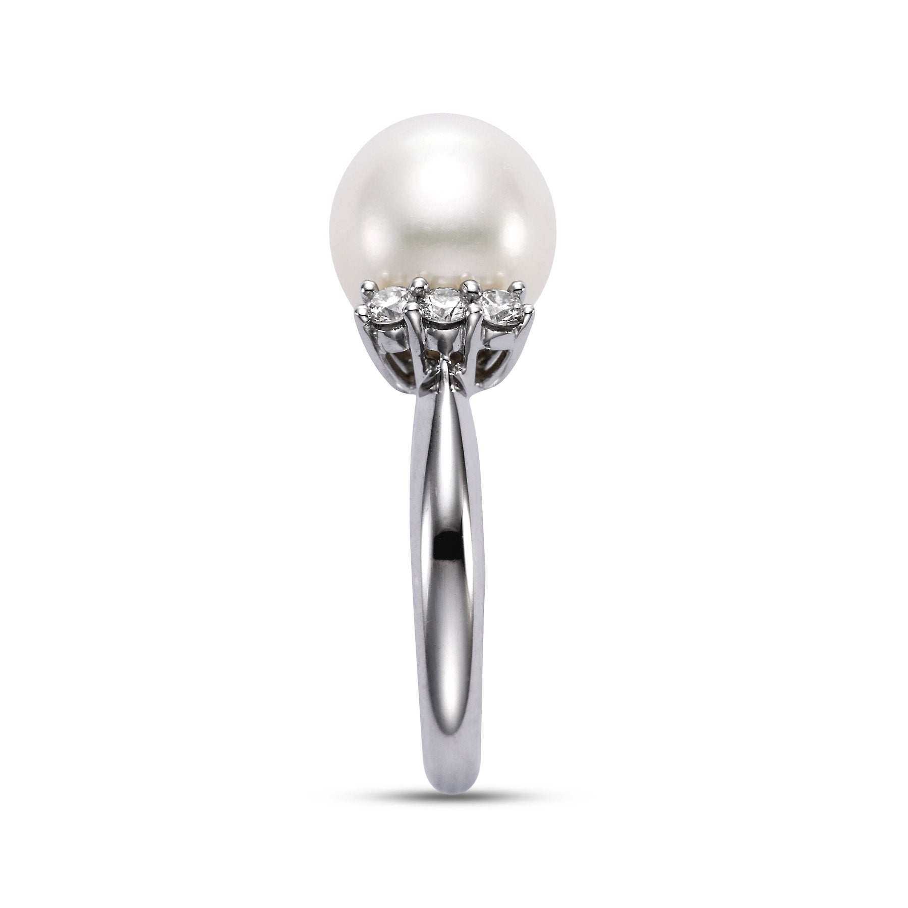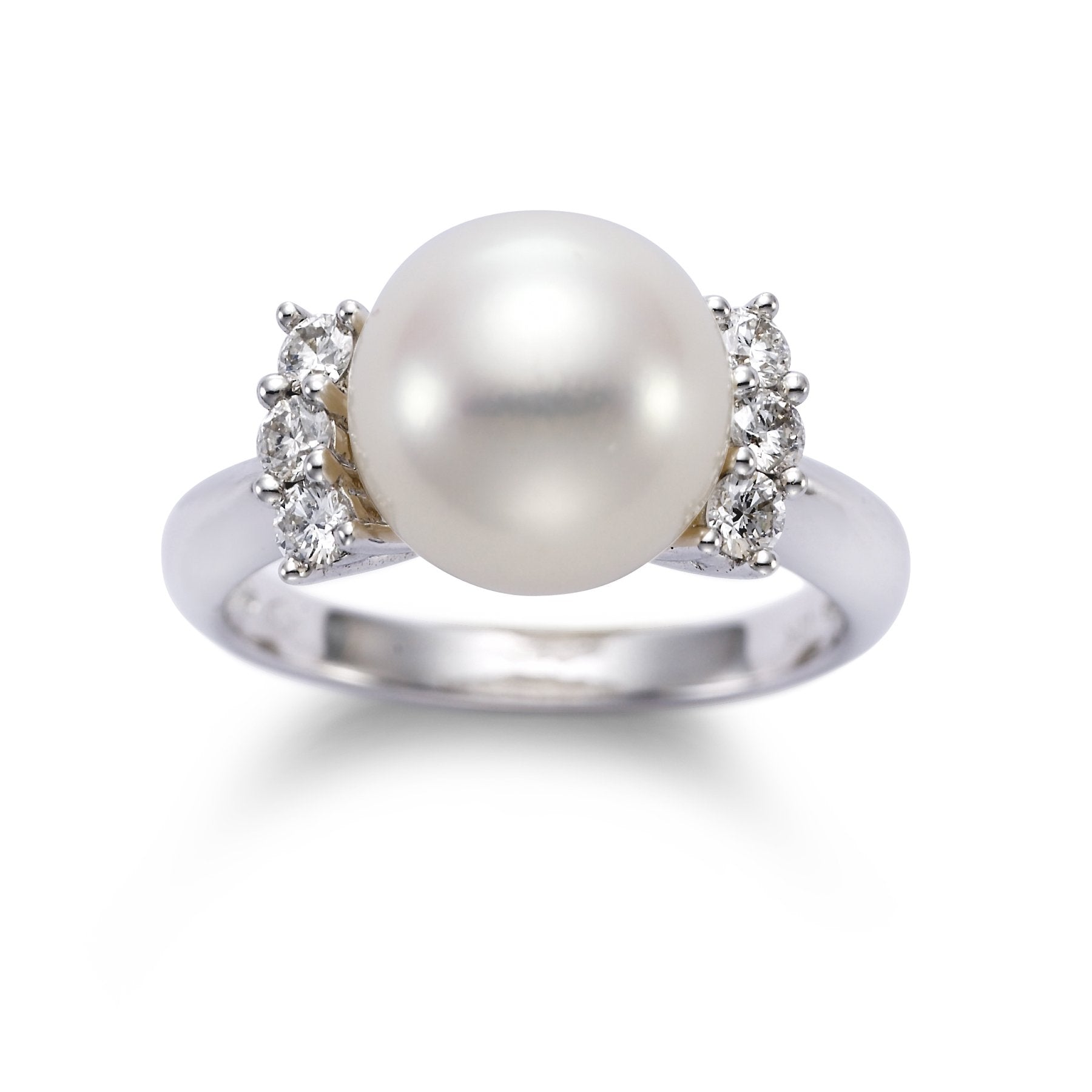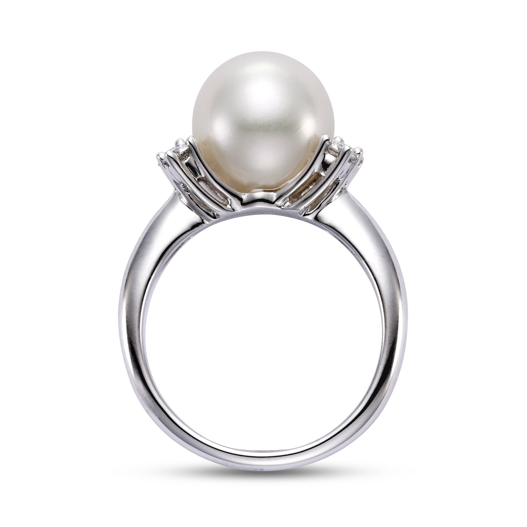 This lovely Bridge Ring is a 18KT White Gold 10-10.5MM White Freshwater Pearl Ring with 6 Diamonds 0.30 TCW and is apart of our Mastoloni Collection. Our Mastoloni collection of jewelry includes bracelets, rings, necklaces, and earrings.