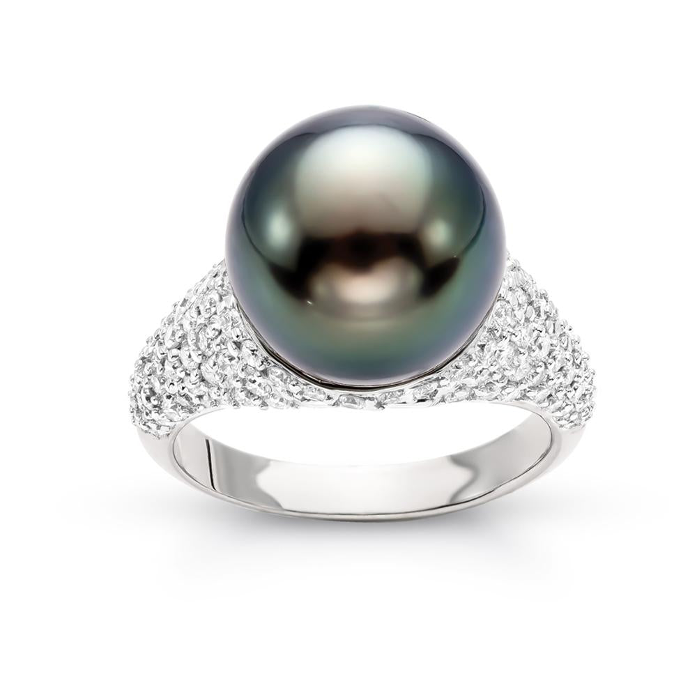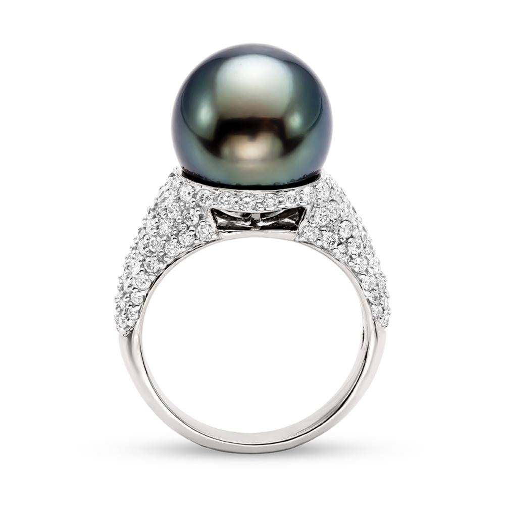 This lovely Pavé Cocktail Ring is a 18KT White Gold 13MM Black Tahitian Pearl Ring with 108 Diamonds 0.97 TCW and is apart of our Mastoloni Collection. Our Mastoloni collection of jewelry includes bracelets, rings, necklaces, and earrings.