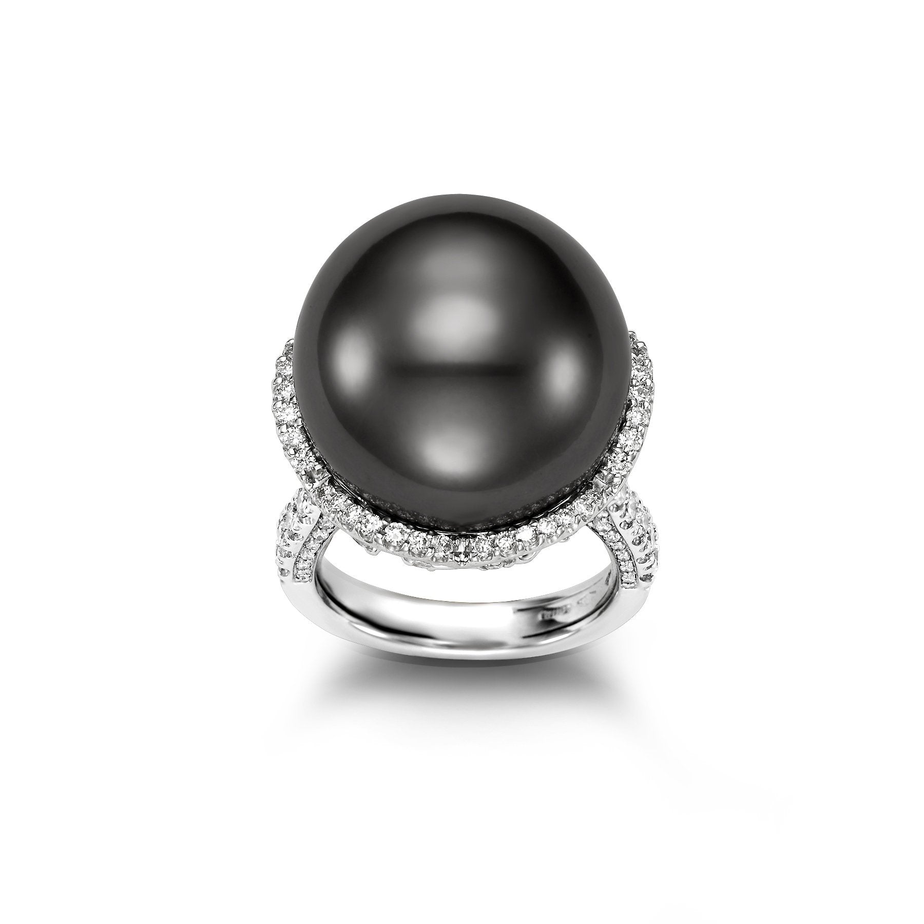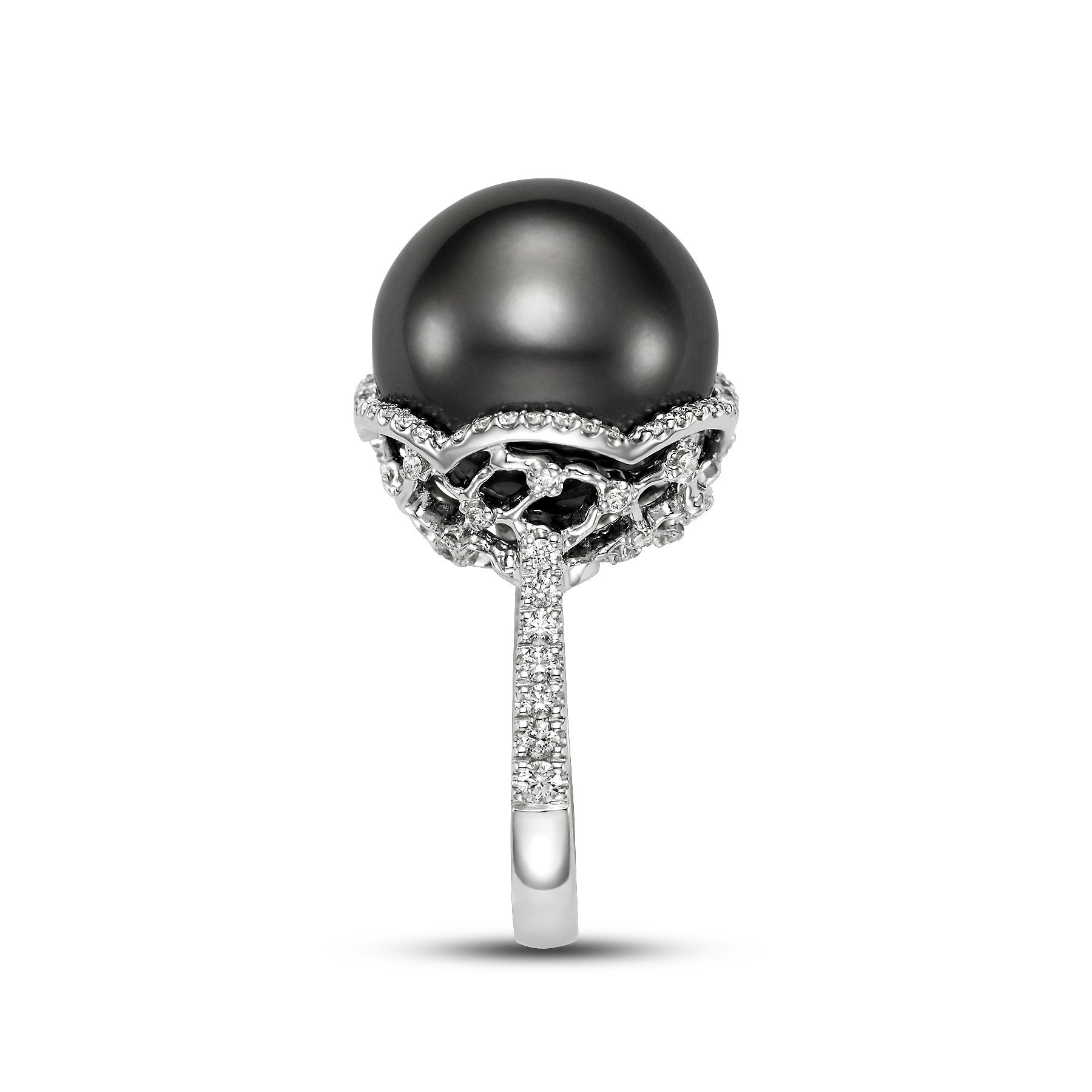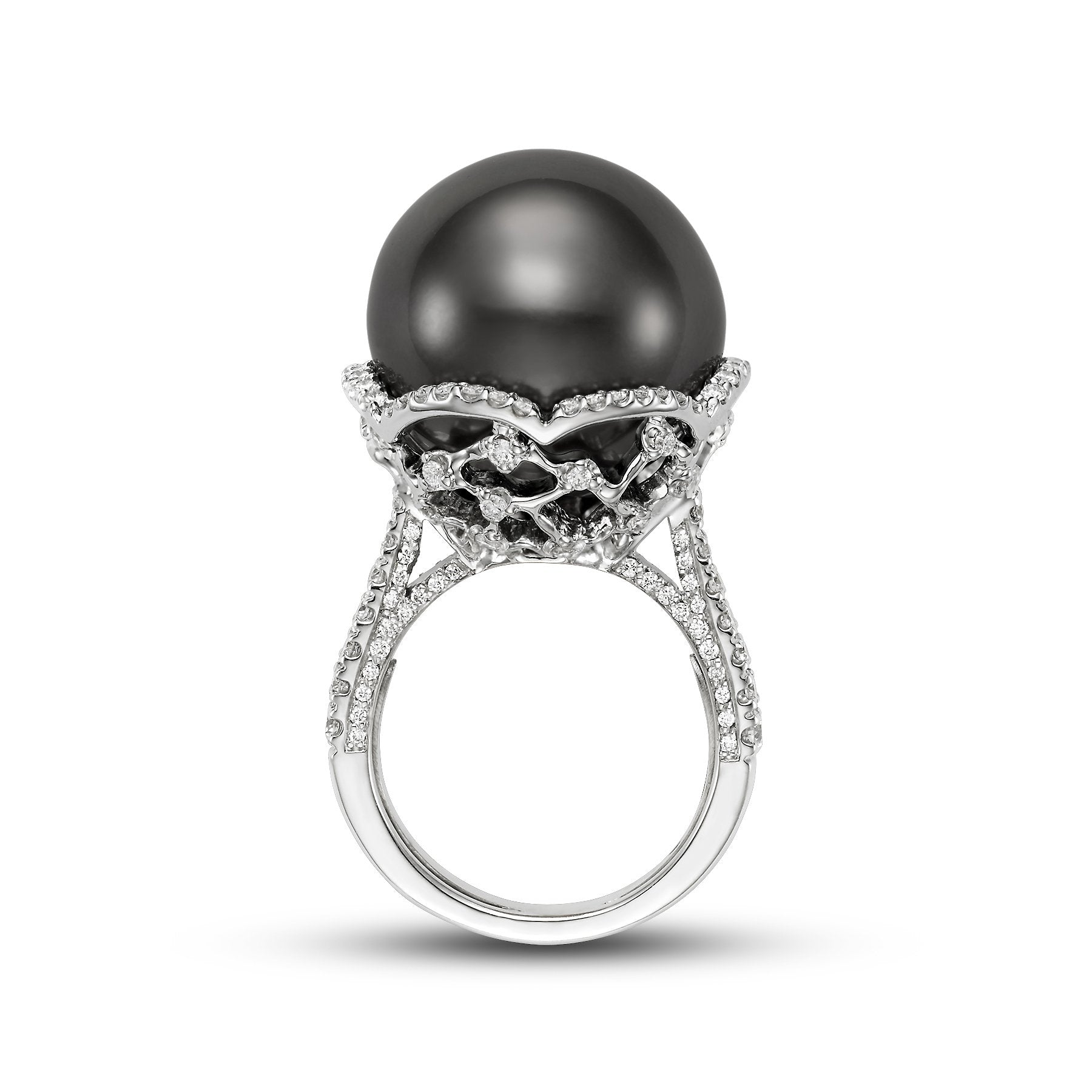 This lovely Limited Edition Lace Cocktail Ring is a 18KT White Gold 17.4MM Black Tahitian Pearl Ring with 30 Diamonds 1.08 TCW and is apart of our Mastoloni Collection. Our Mastoloni collection of jewelry includes bracelets, rings, necklaces, and earrings.