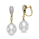 This lovely Pavé Teardrop Earrings is a 18KT Yellow Gold 12.6-14.3MM South Sea Pearl Drop Earrings with 28 Diamonds 0.75 TCW and is apart of our Mastoloni Collection. Our Mastoloni collection of jewelry includes bracelets, rings, necklaces, and earrings.