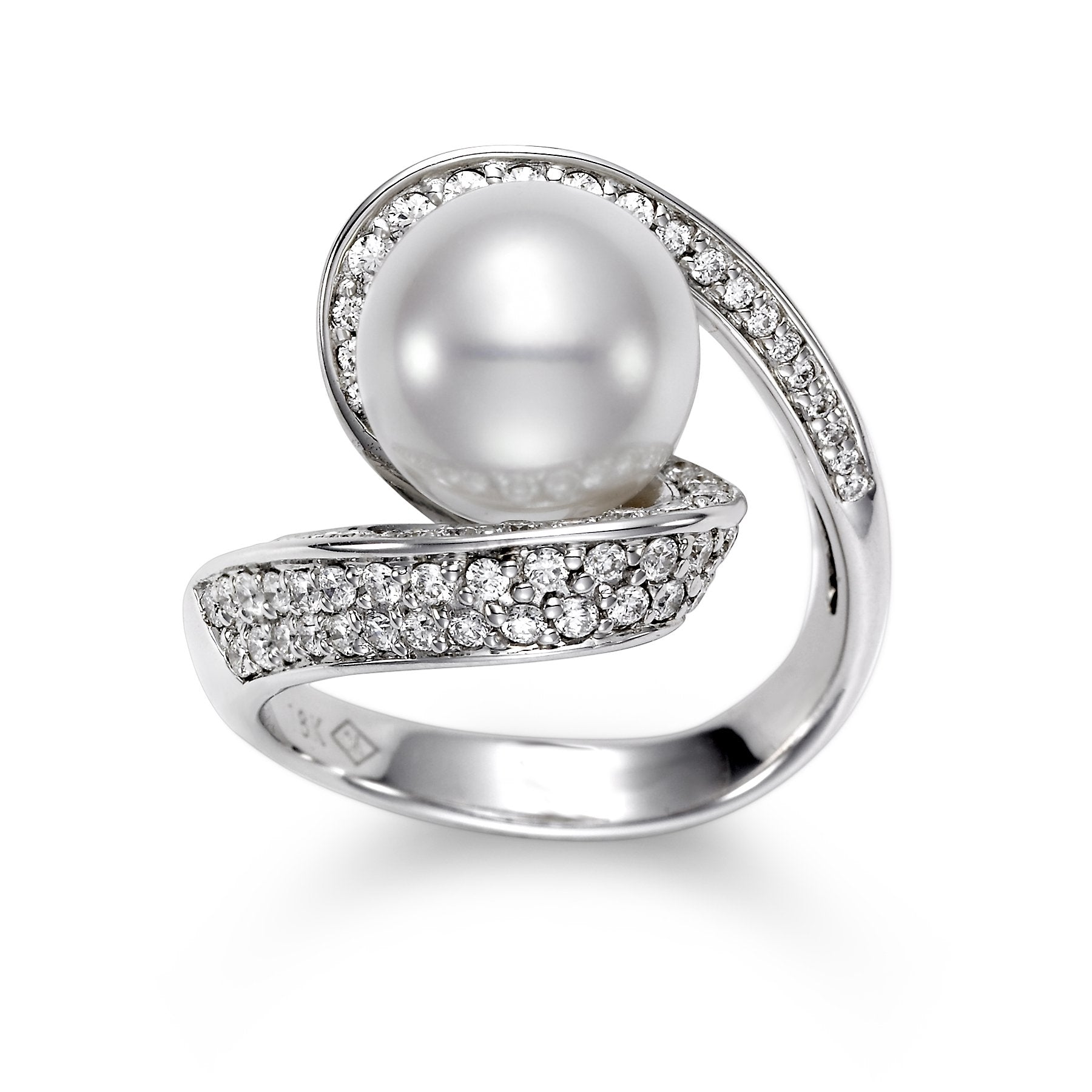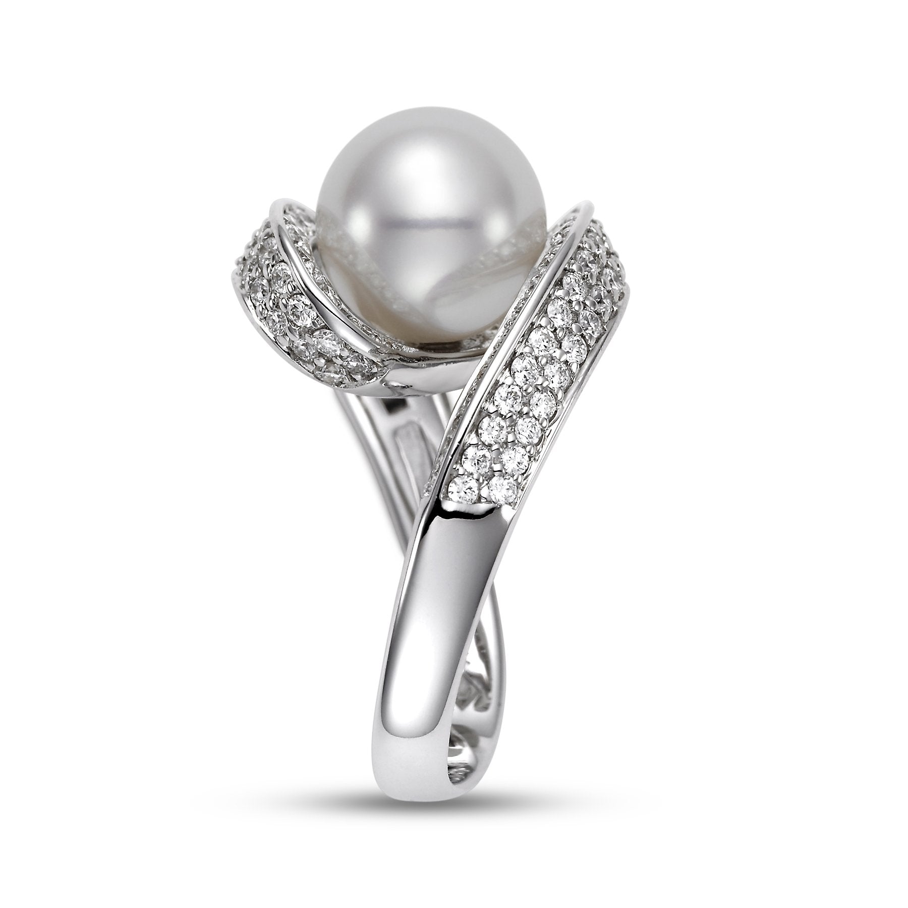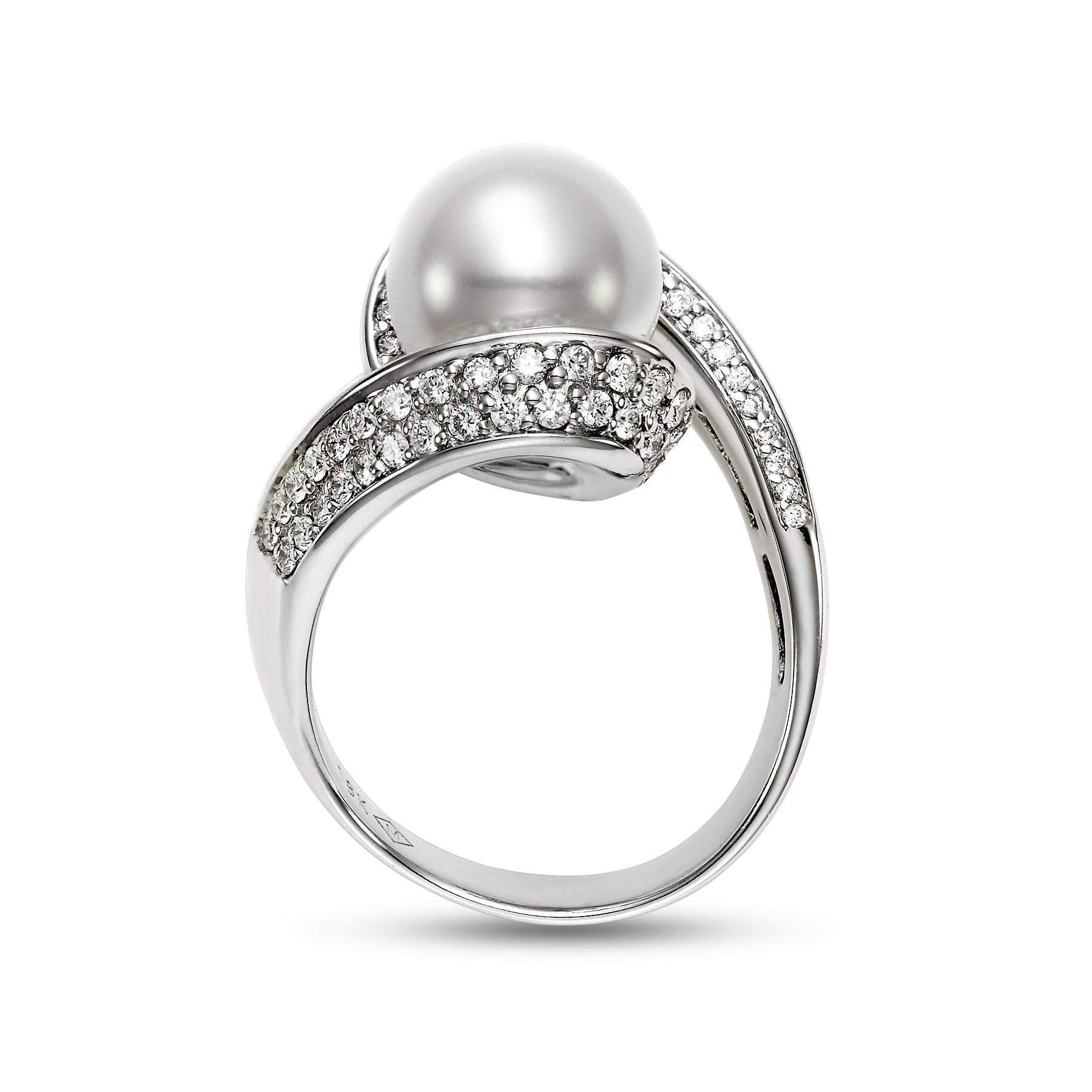 This lovely Pavé Papyrus Ring is a 18KT White Gold 10MM White South Sea Pearl Ring with 100 Diamonds 0.95 TCW and is apart of our Mastoloni Collection. Our Mastoloni collection of jewelry includes bracelets, rings, necklaces, and earrings.