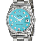 Swiss CrownT USA Pre-owned Rolex-Independently Certified Steel 36mm Oyster Datejust Teal Diamond Dial and Bezel Watch