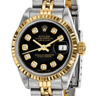 Swiss CrownT USA Pre-owned Rolex-Independently Certified Steel and 18k 26mm Jubilee Datejust Black Diamond Dial and Fluted Bezel Watch