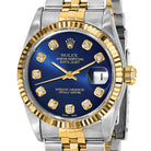 Swiss CrownT USA Pre-owned Rolex-Independently Certified Steel and 18k 31mm Jubilee Datejust Blue Diamond Dial and Fluted Bezel Watch