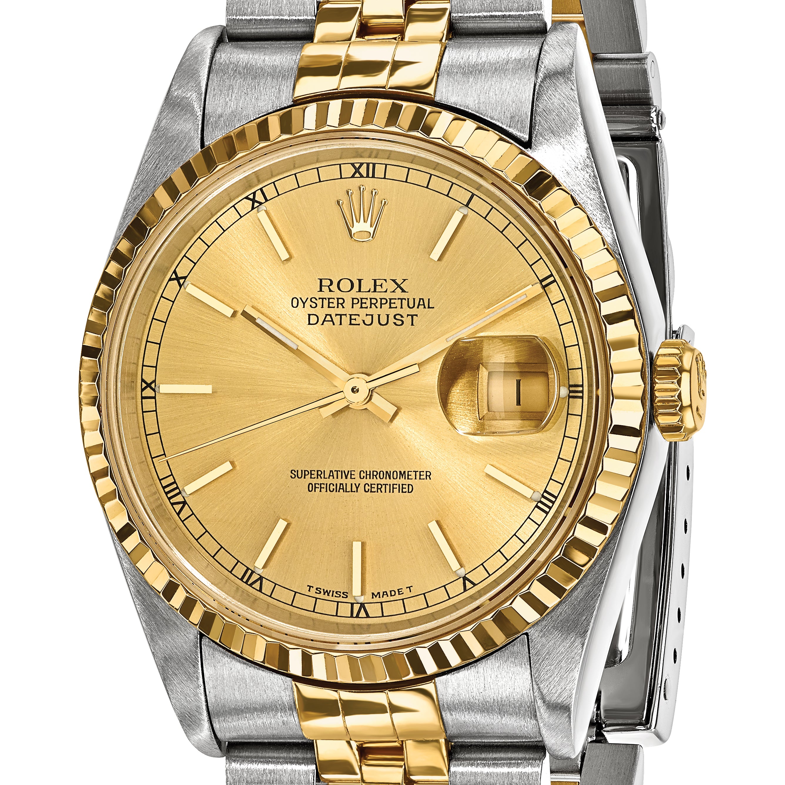 Swiss CrownT USA Pre-owned Rolex-Independently Certified Steel and 18k 36mm Jubilee Datejust Champagne Dial and Fluted Bezel Watch