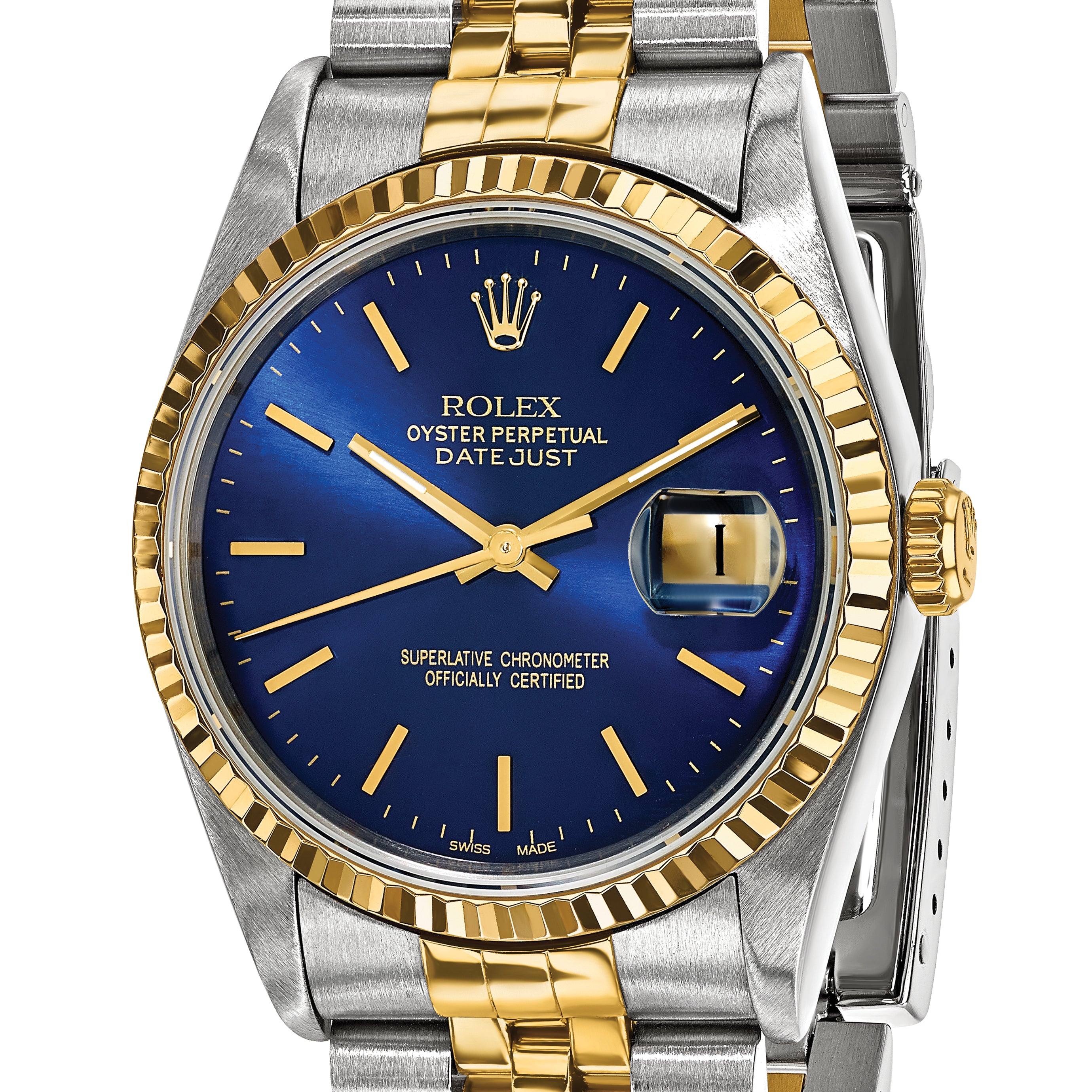 Swiss CrownT USA Pre-owned Rolex-Independently Certified Steel and 18k 36mm Jubilee Datejust Blue Dial and Fluted Bezel Watch