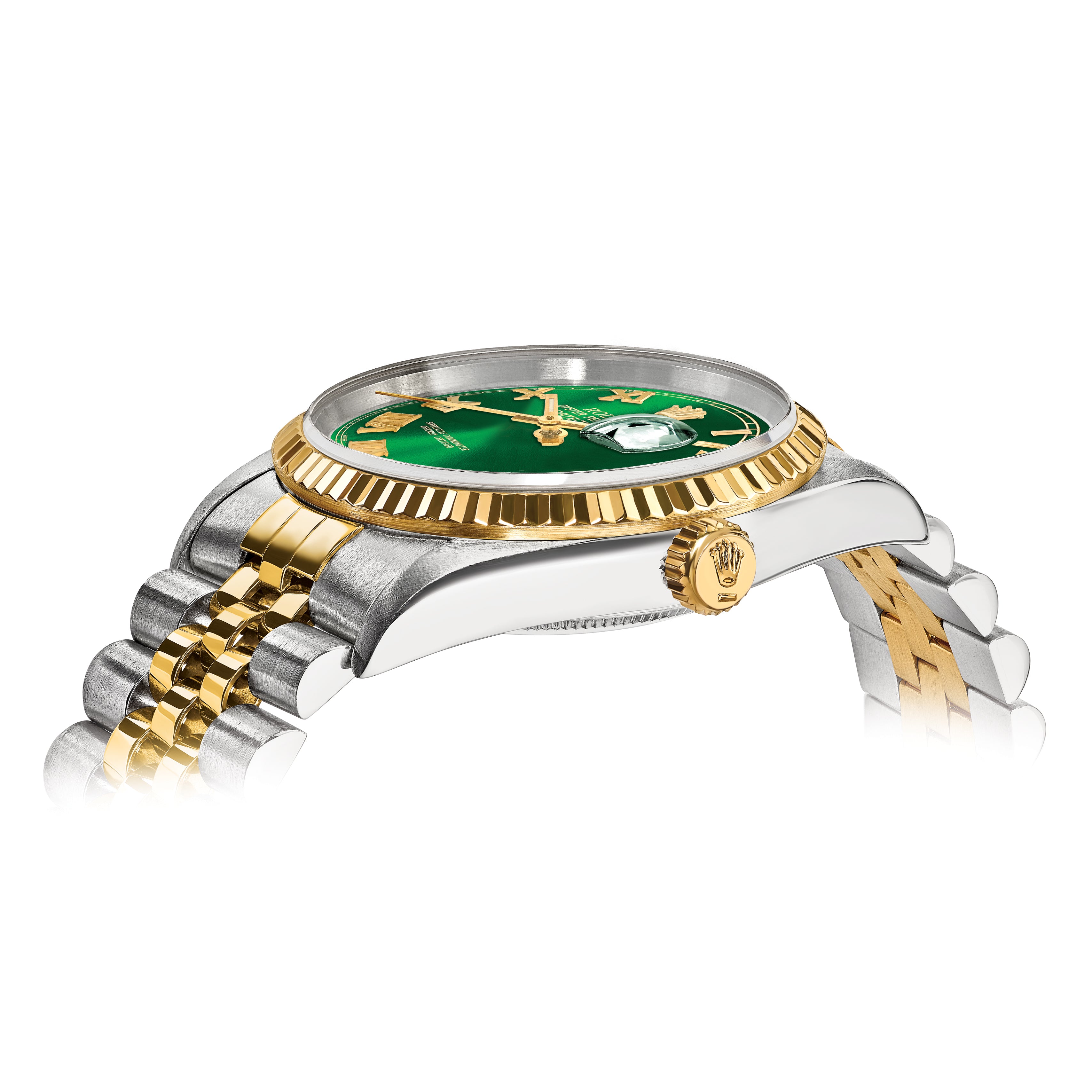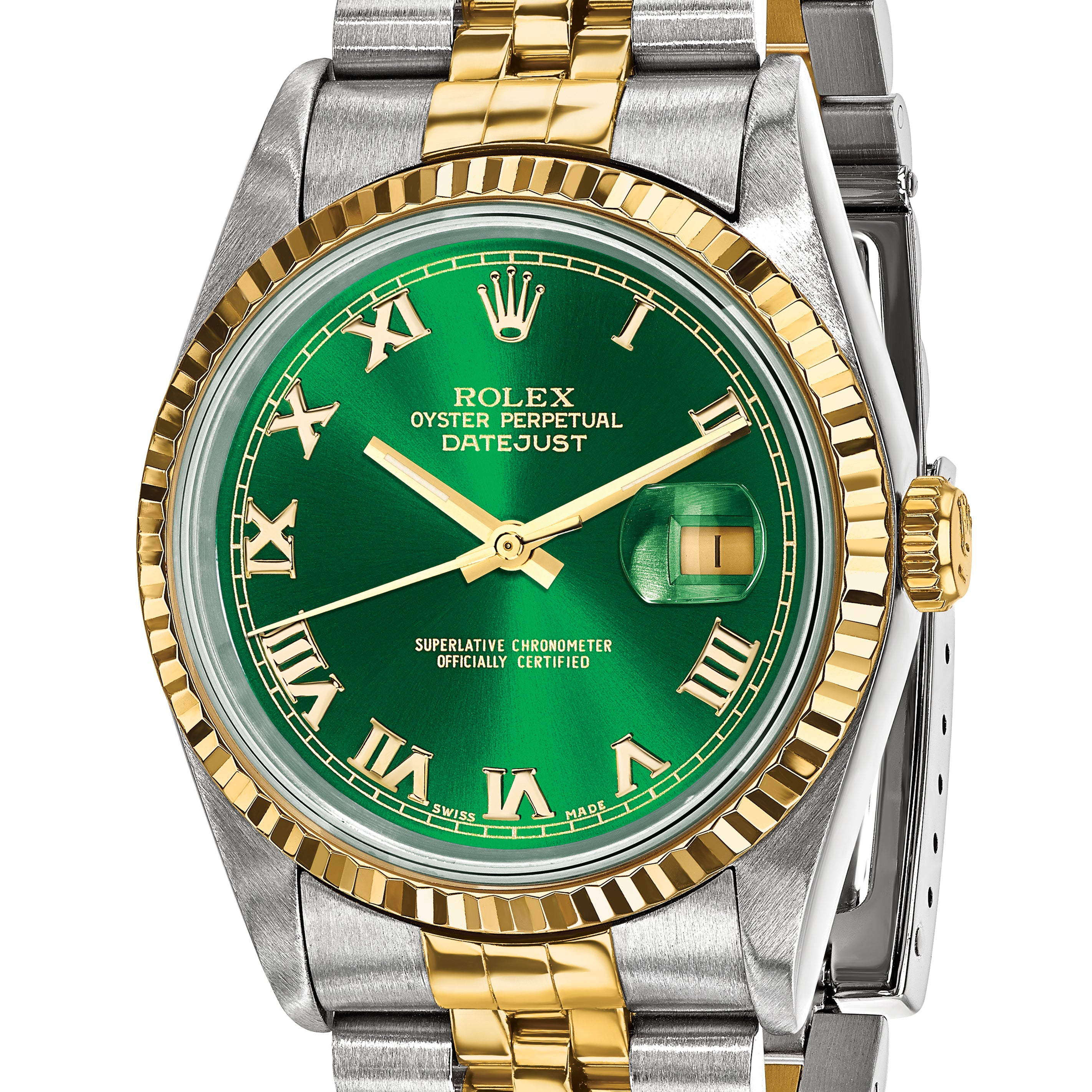 Swiss CrownT USA Pre-owned Rolex-Independently Certified Steel and 18k 36mm Jubilee Datejust Green Dial and Fluted Bezel Watch