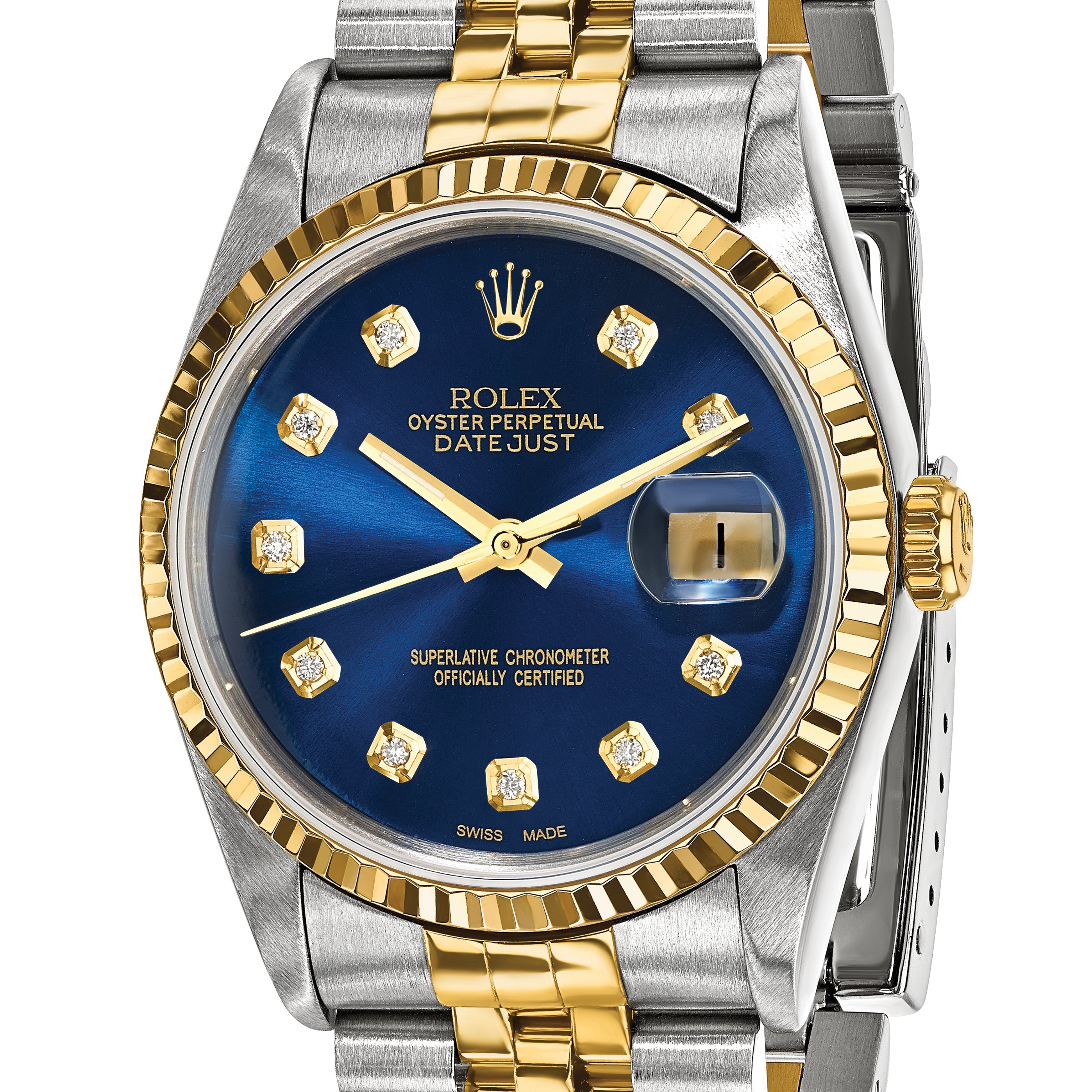 Swiss CrownT USA Pre-owned Rolex-Independently Certified Steel and 18k 36mm Jubilee Datejust Blue Diamond Dial and Fluted Bezel Watch