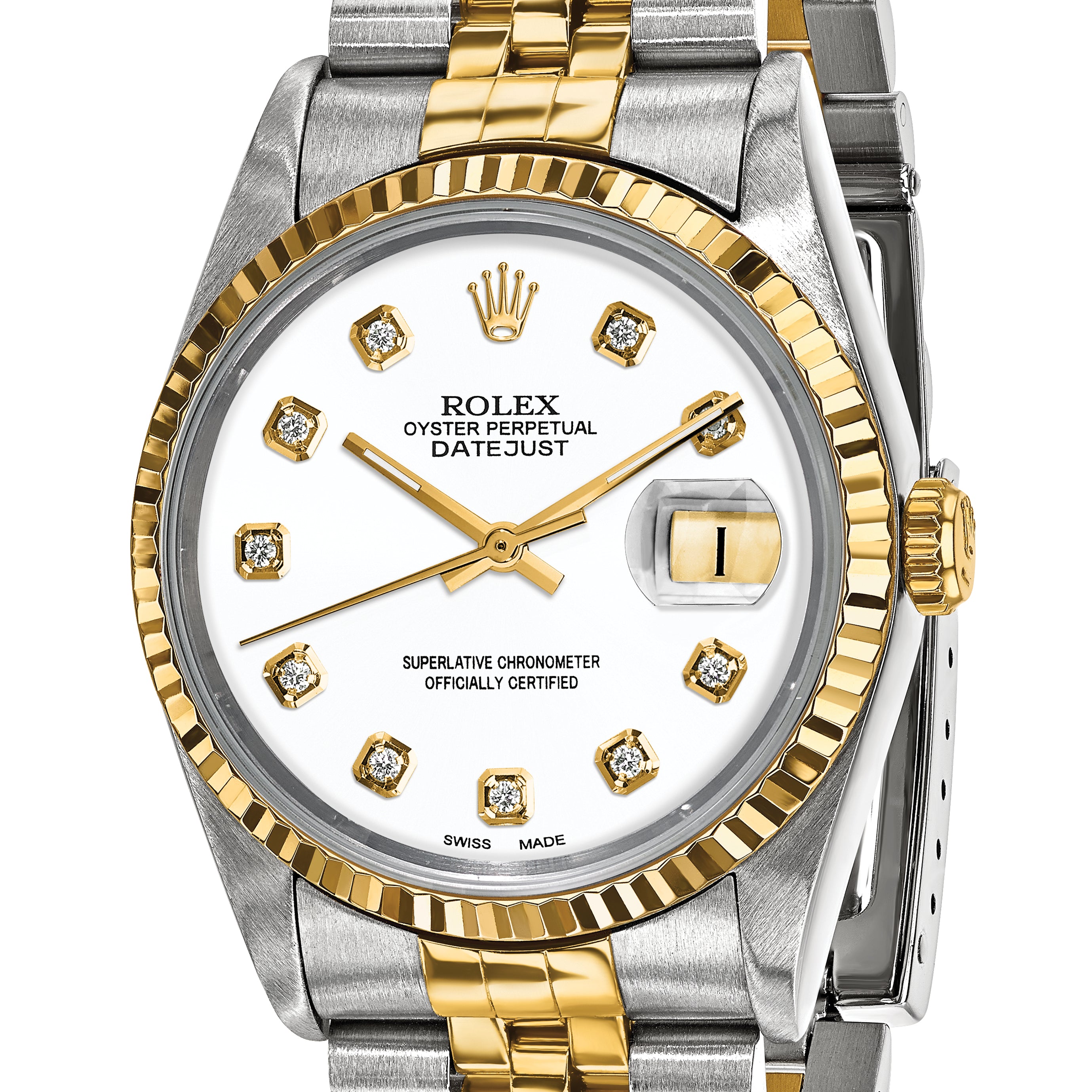 Swiss CrownT USA Pre-owned Rolex-Independently Certified Steel and 18k 36mm Jubilee Datejust White Diamond Dial and Fluted Bezel Watch