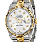 Swiss CrownT USA Pre-owned Rolex-Independently Certified Steel and 18k 36mm Jubilee Datejust Silver Diamond Dial and Fluted Bezel Watch