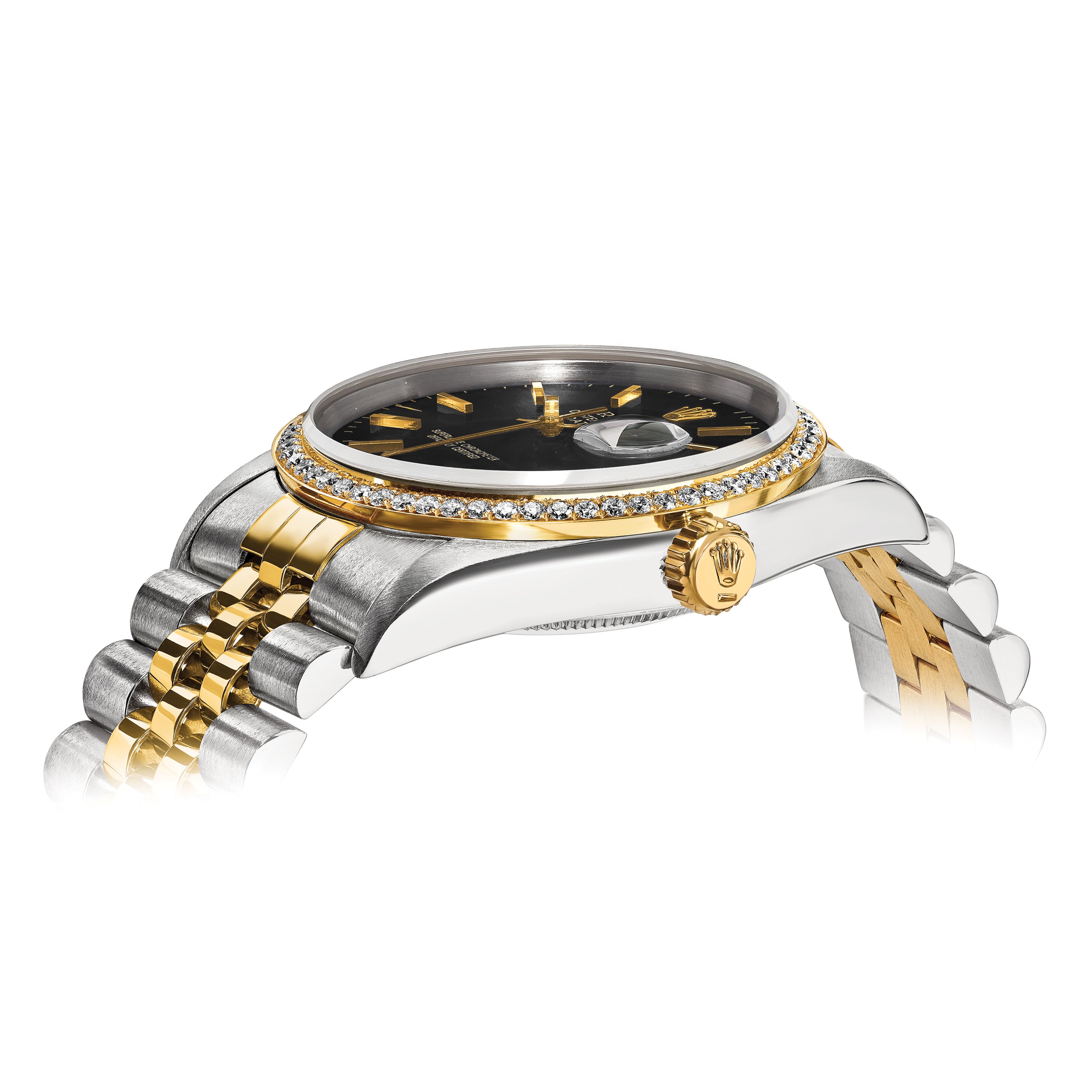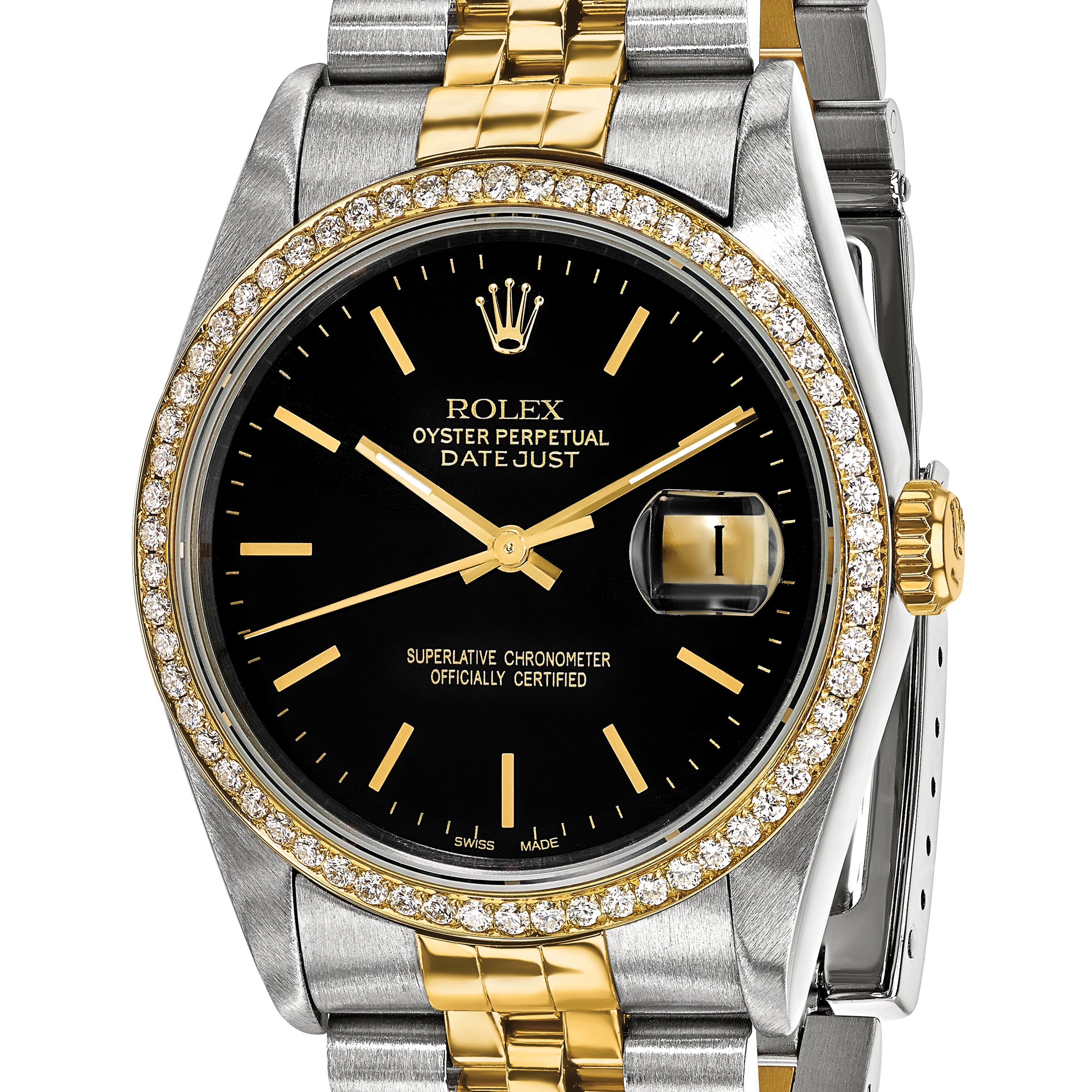 Swiss CrownT USA Pre-owned Rolex-Independently Certified Steel and 18k 36mm Jubilee Datejust Black Dial and Diamond Bezel Watch