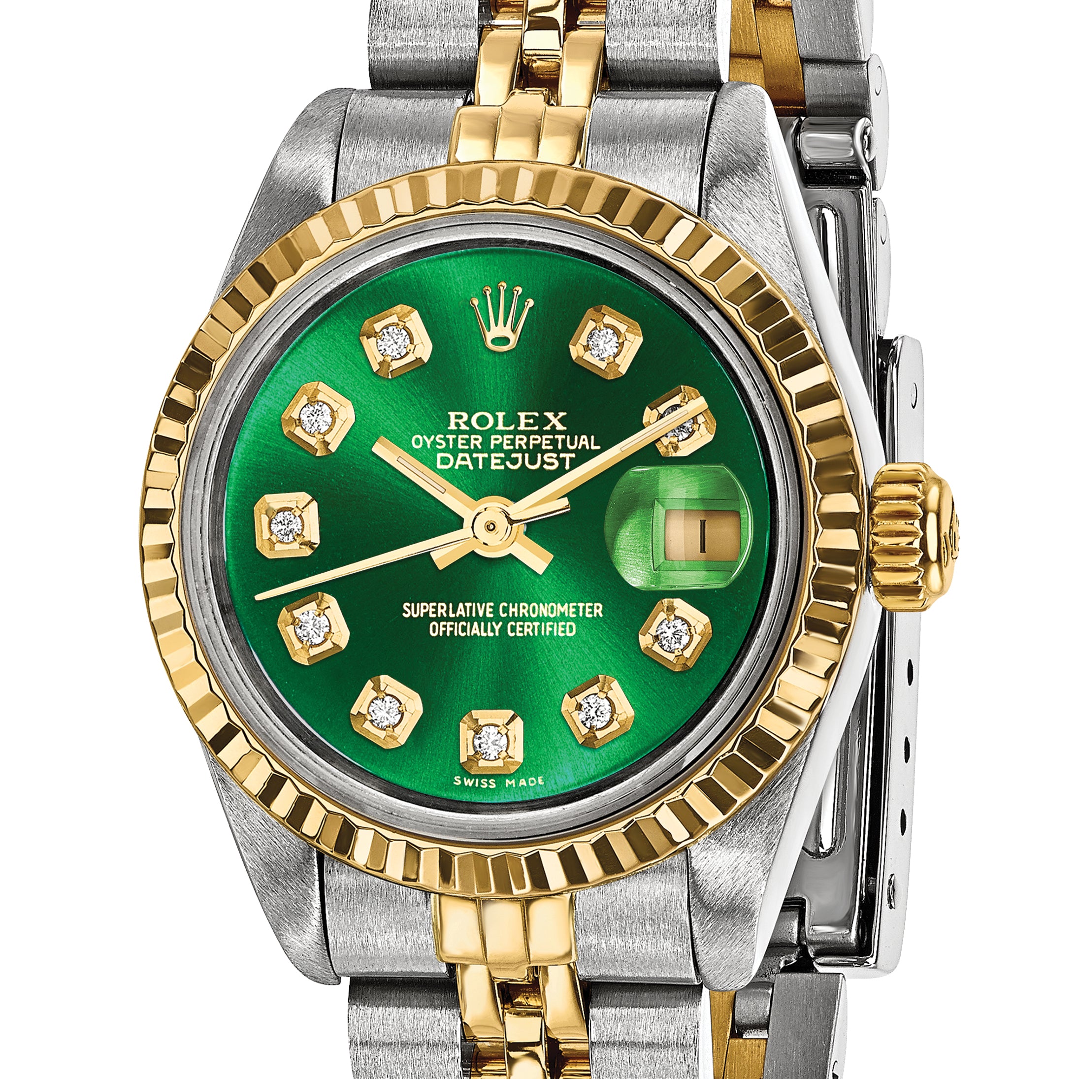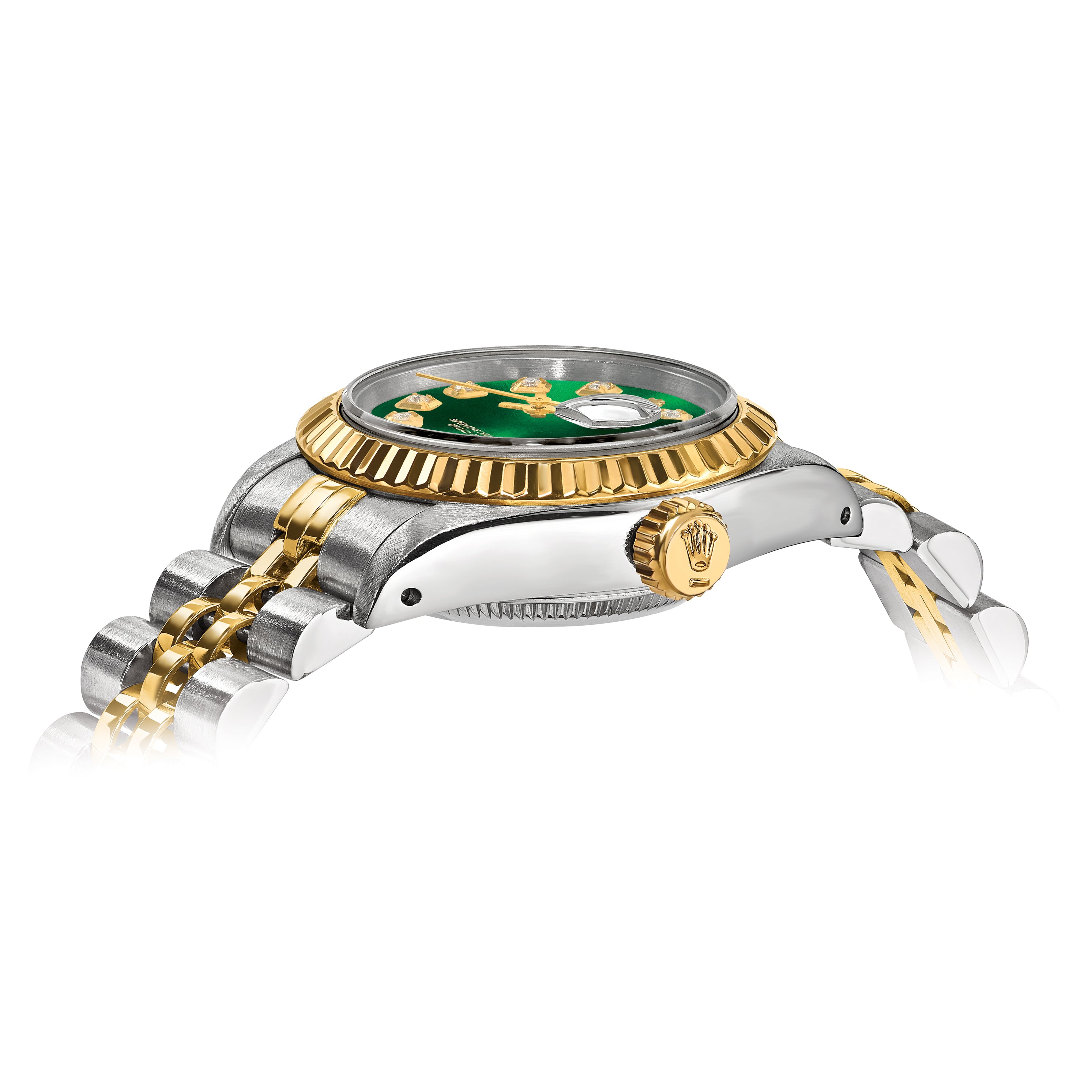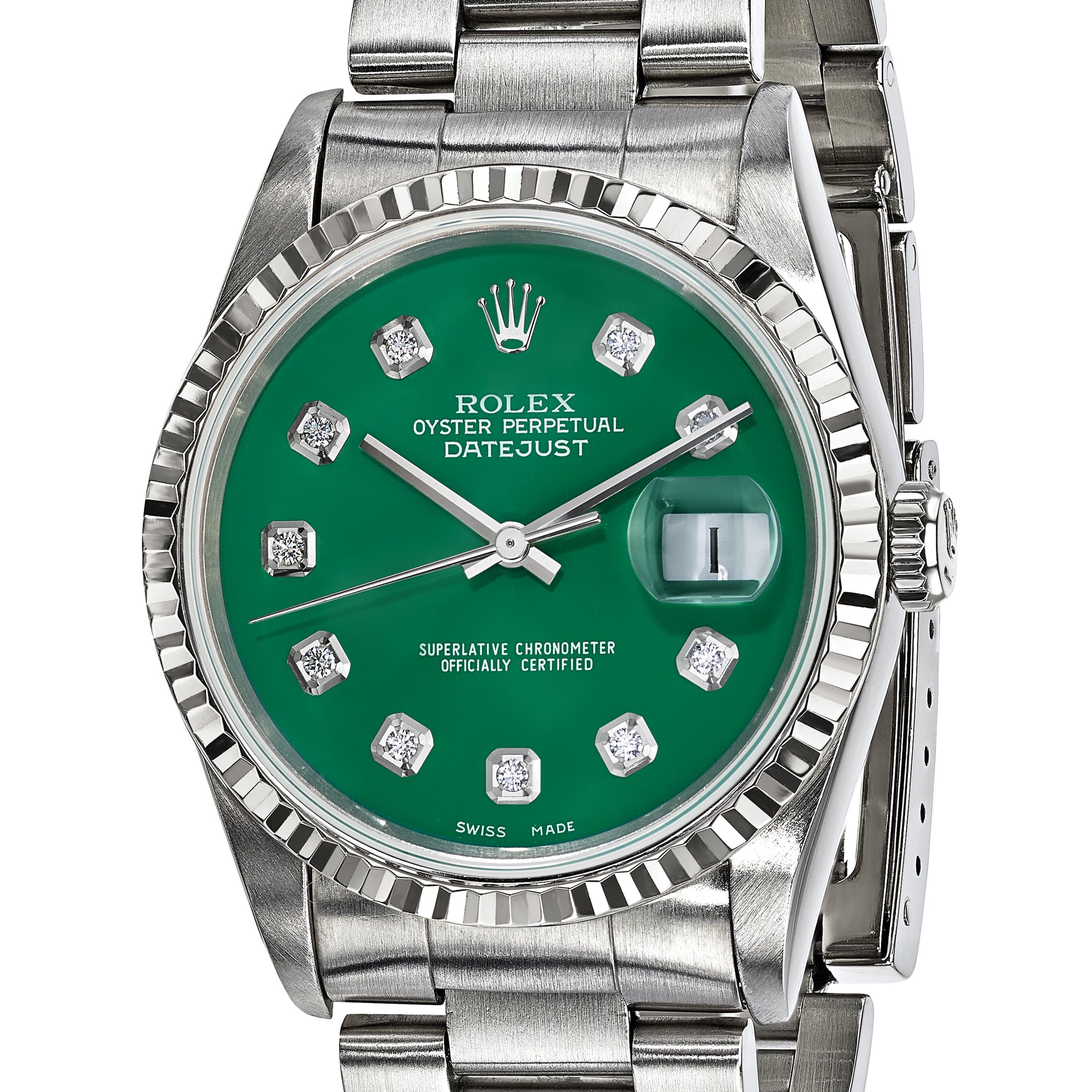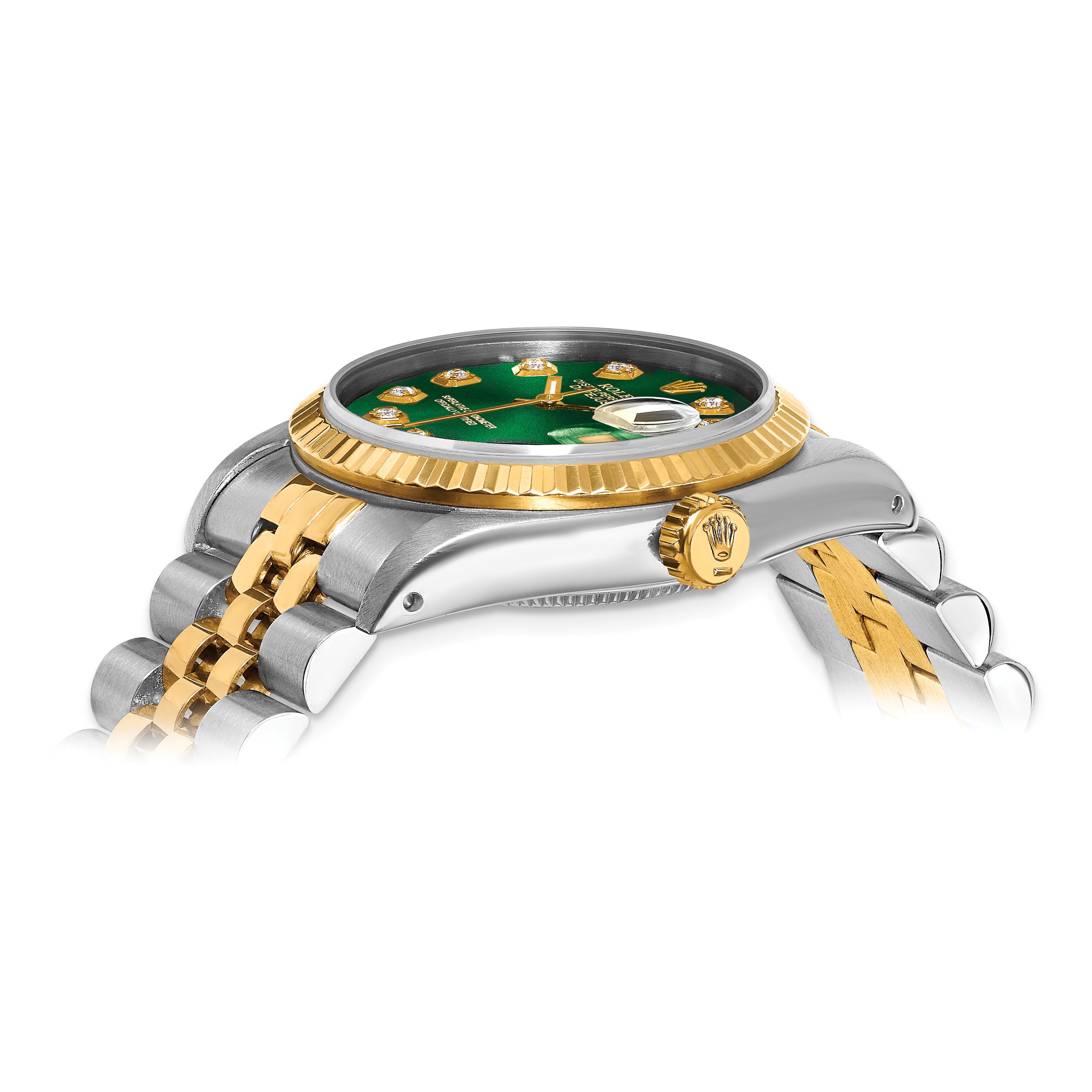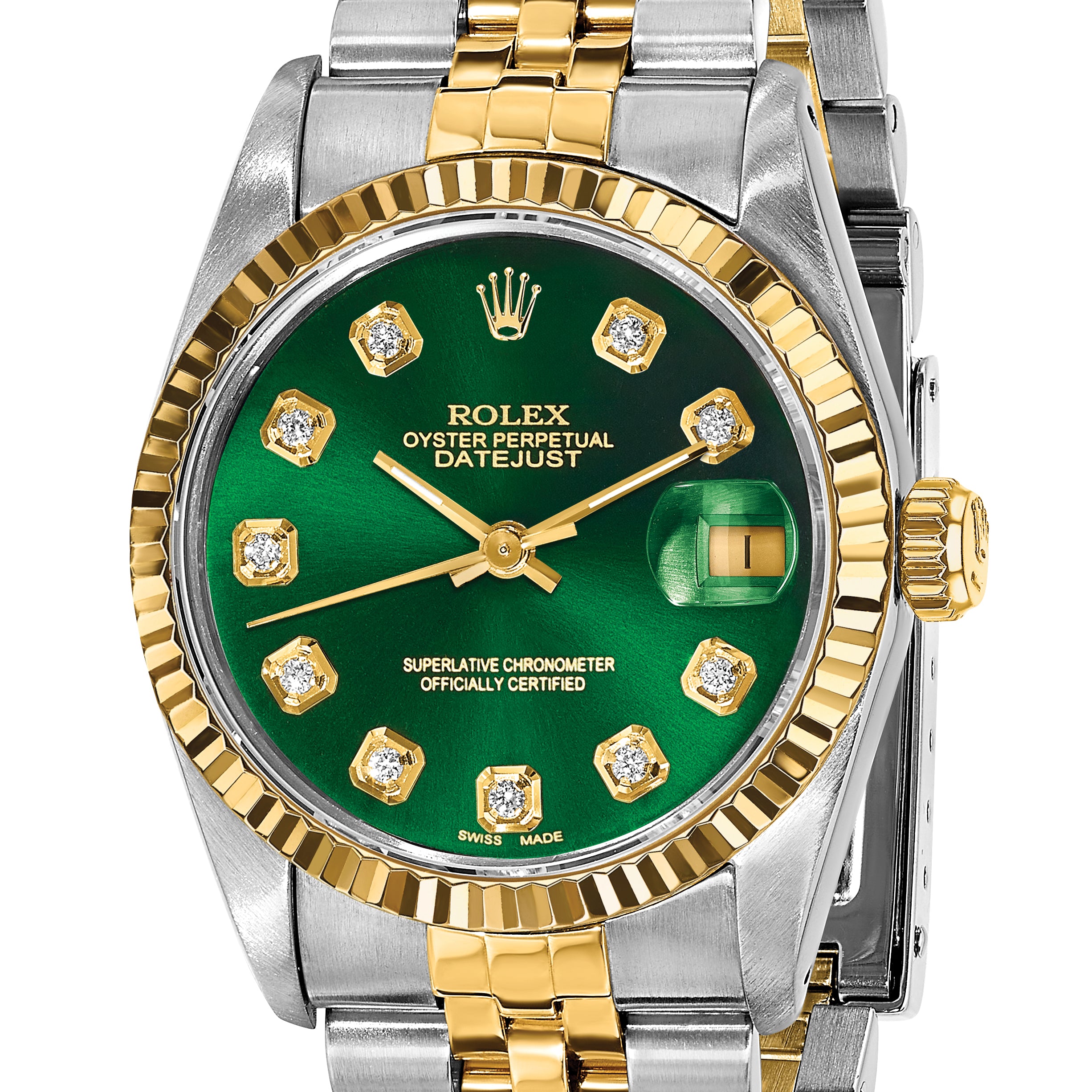 Pre-owned Independently Certified Men's Two-tone Datejust Jubilee with Emerald Green Diamond Dial and 18K Fluted Bezel