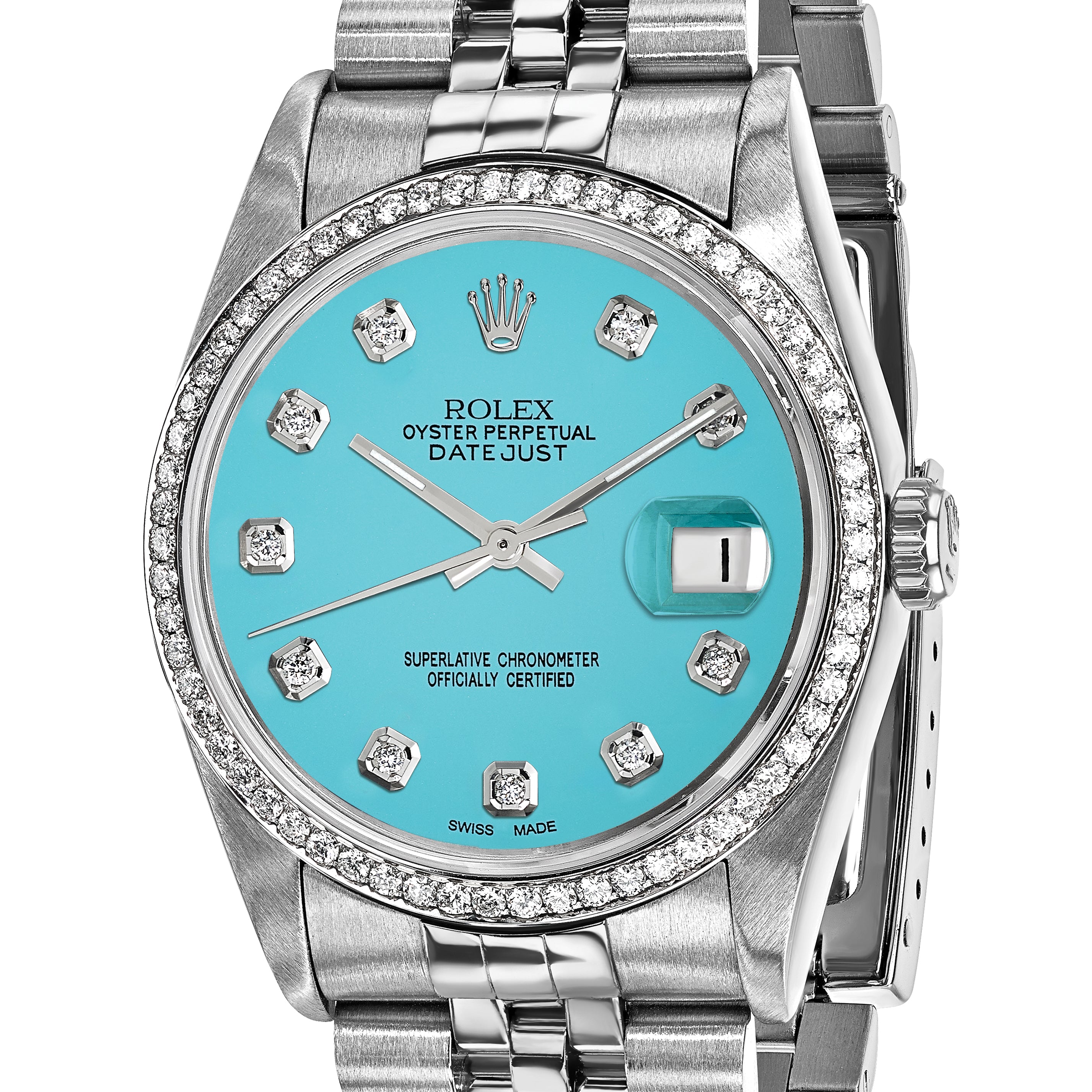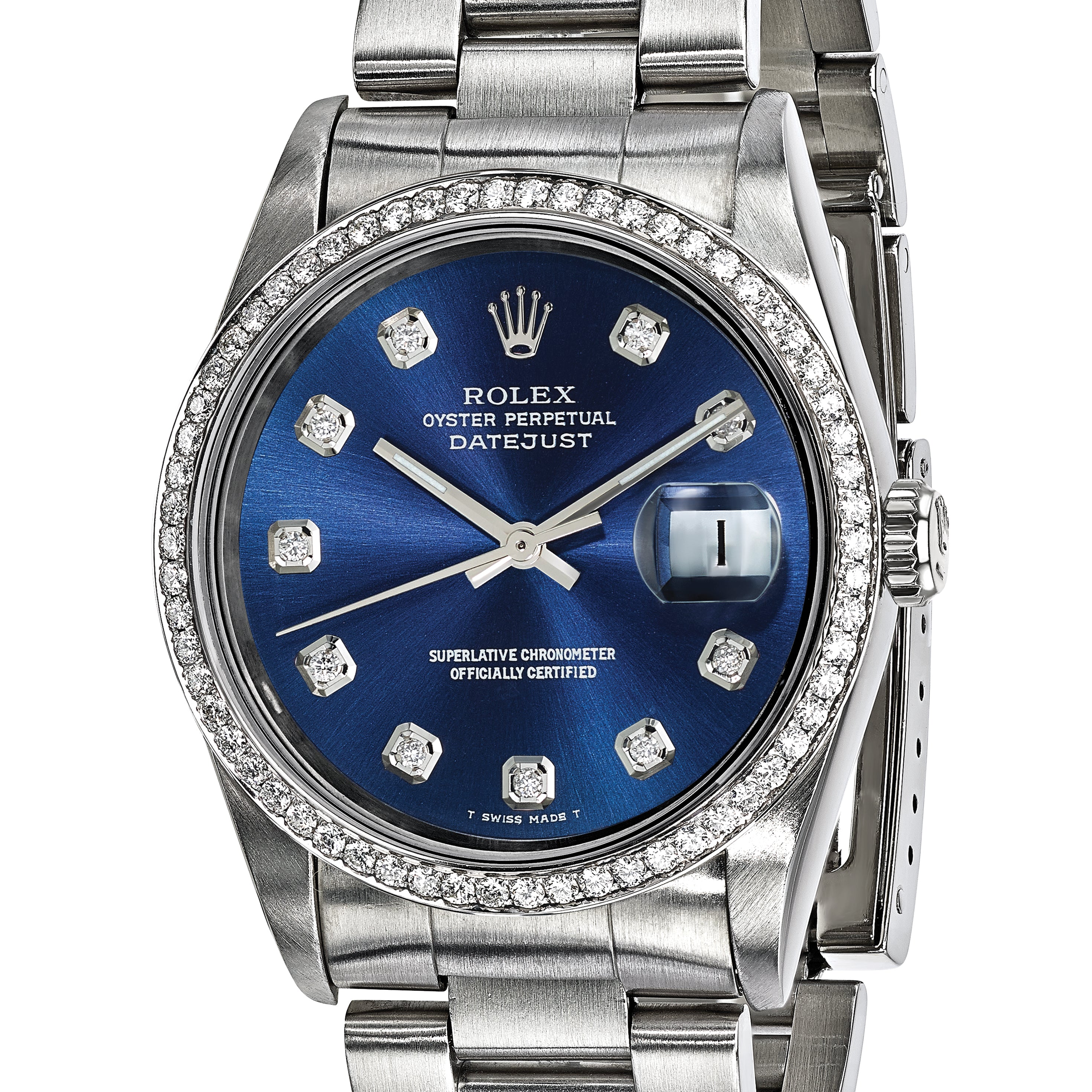 Pre-owned Independently Certified Men's Stainless Steel Datejust Jubilee with Blue Diamond Dial and 18K Fluted Bezel