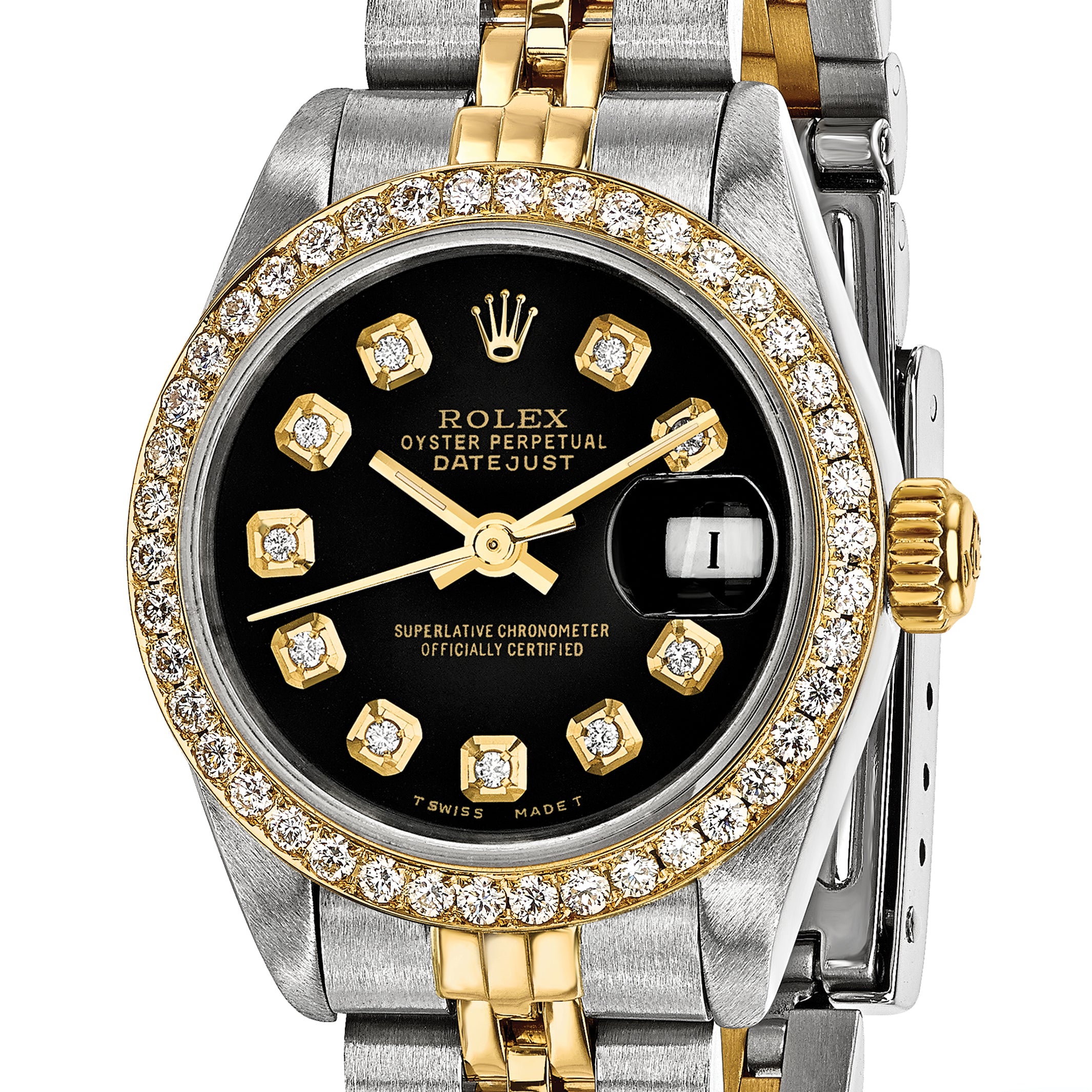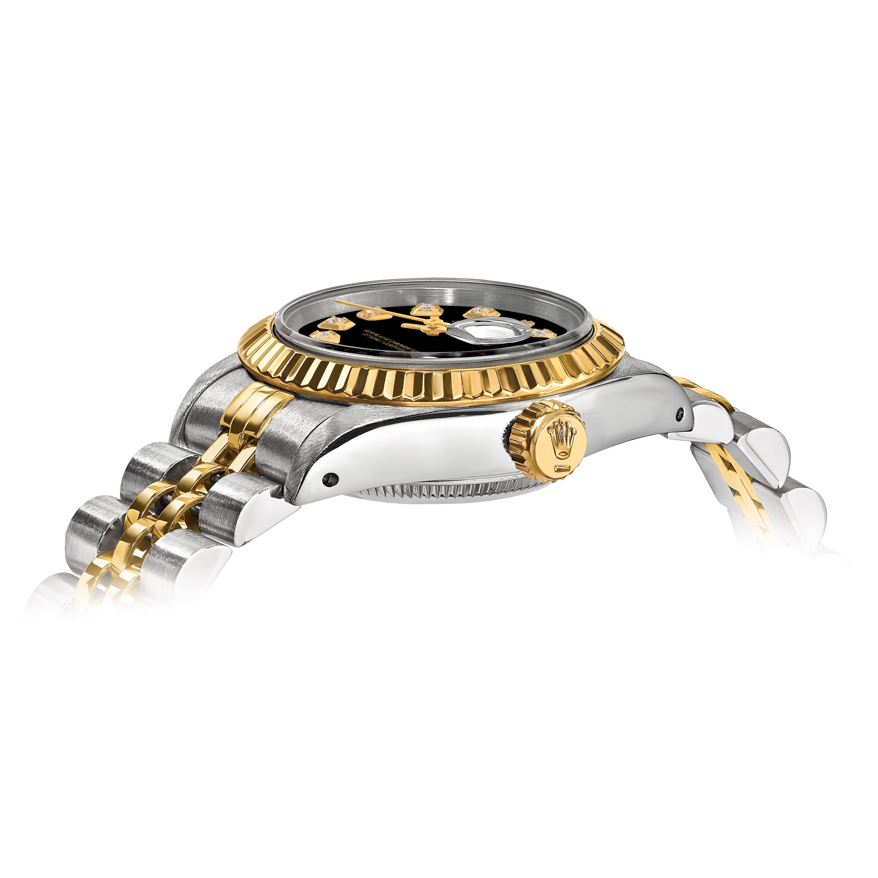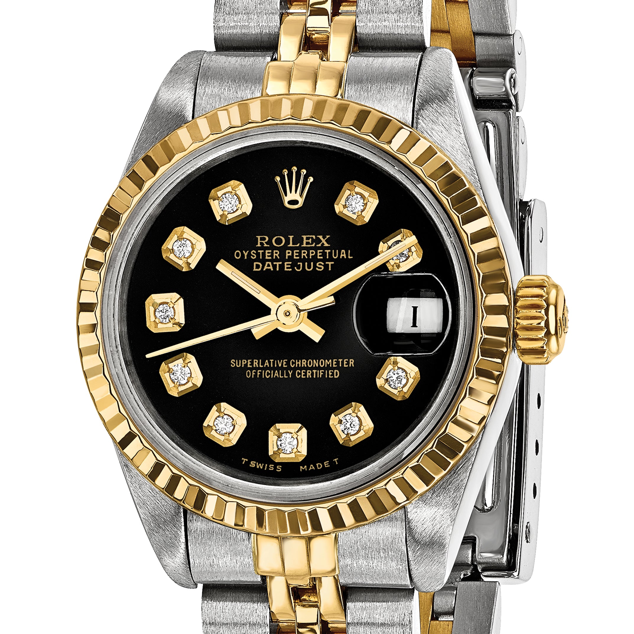 Pre-owned Independently Certified Men's Two-tone Datejust Jubilee with Black Diamond Dial and 18K Fluted Bezel