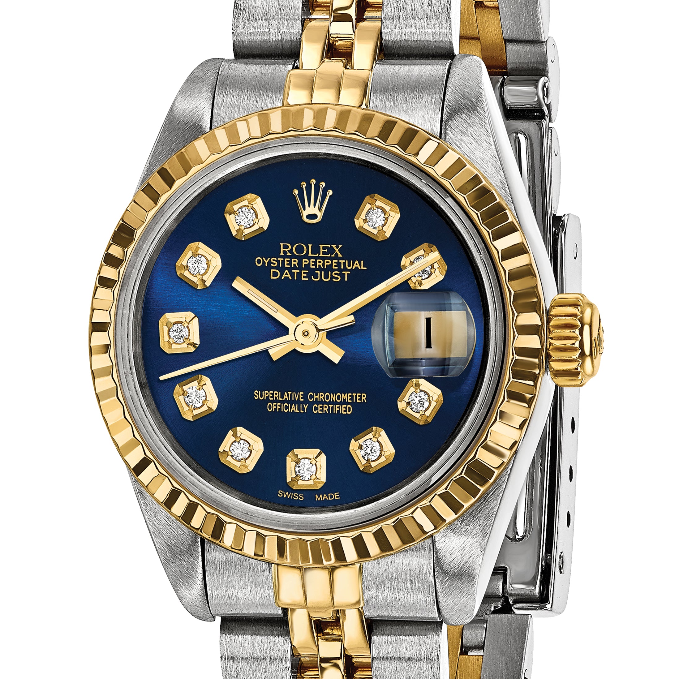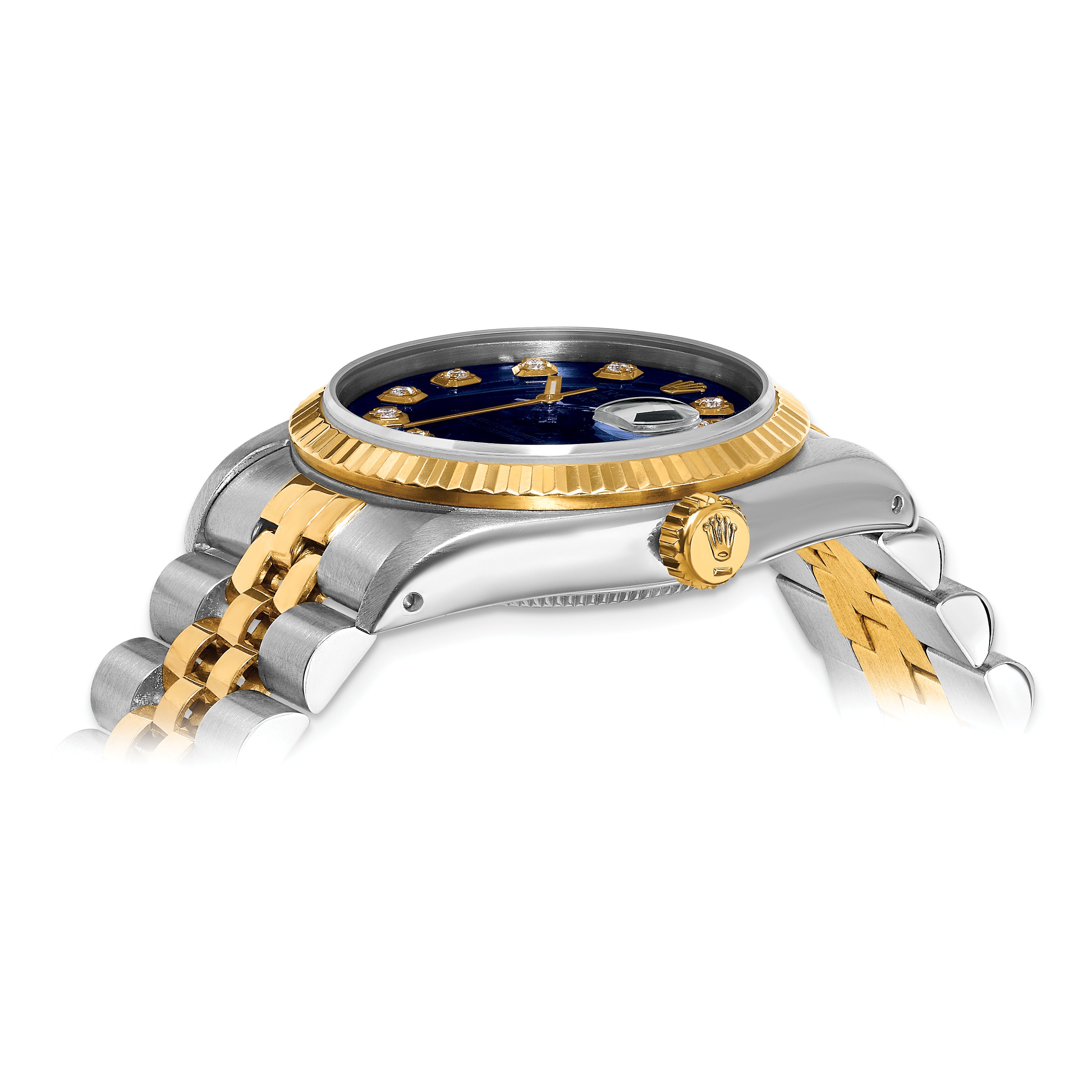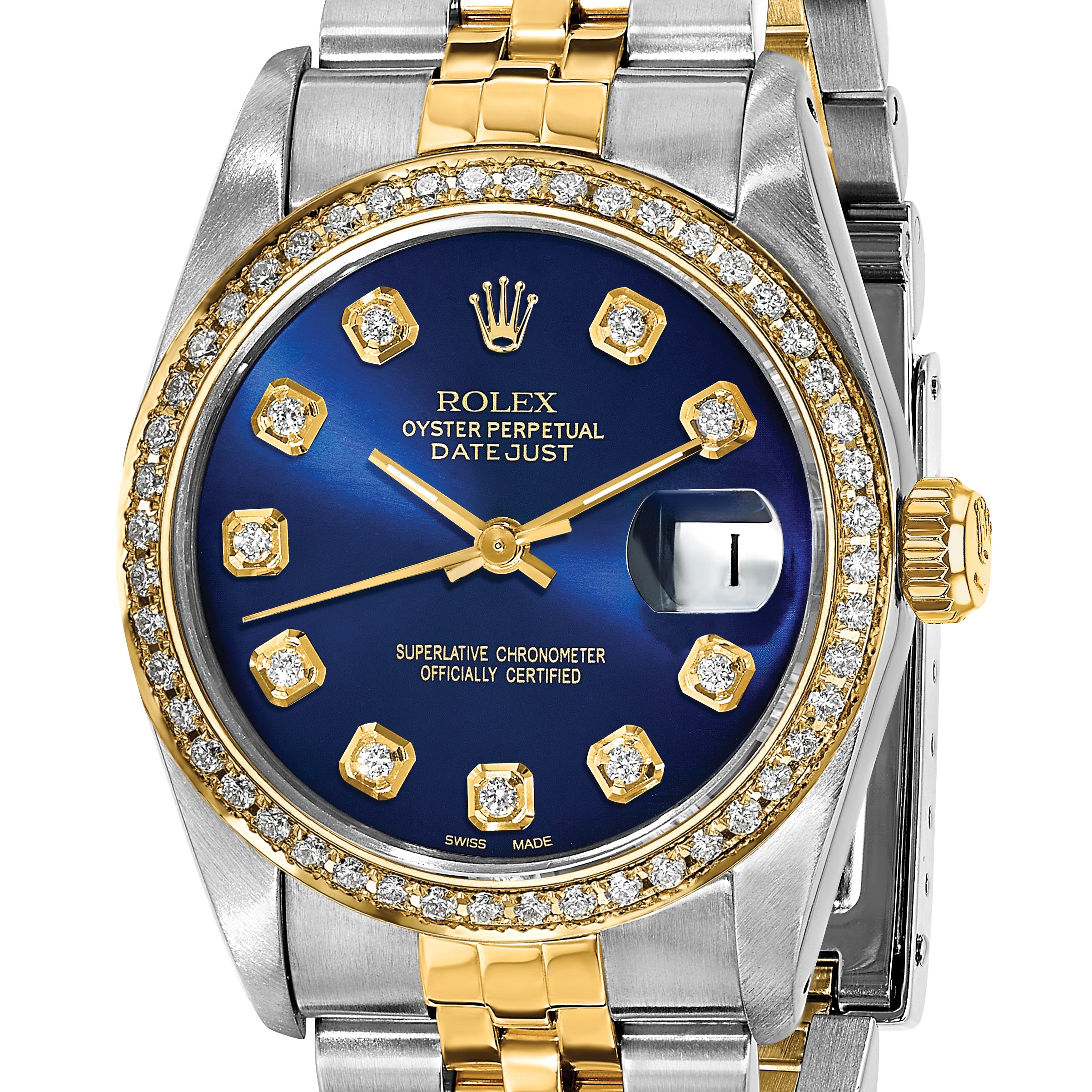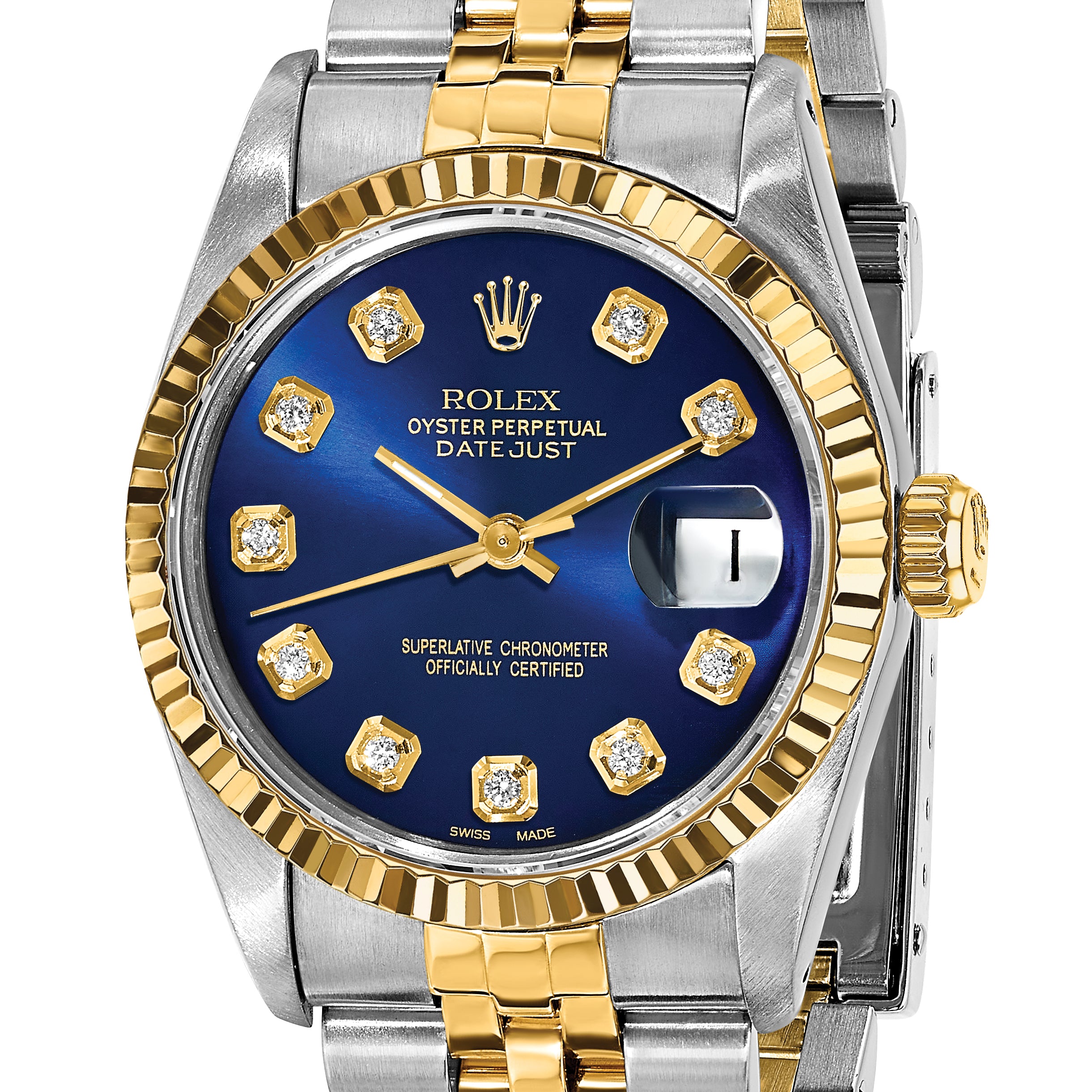 Pre-owned Independently Certified Men's Two-tone Datejust Jubilee with Blue Diamond Dial and 18K Fluted Bezel