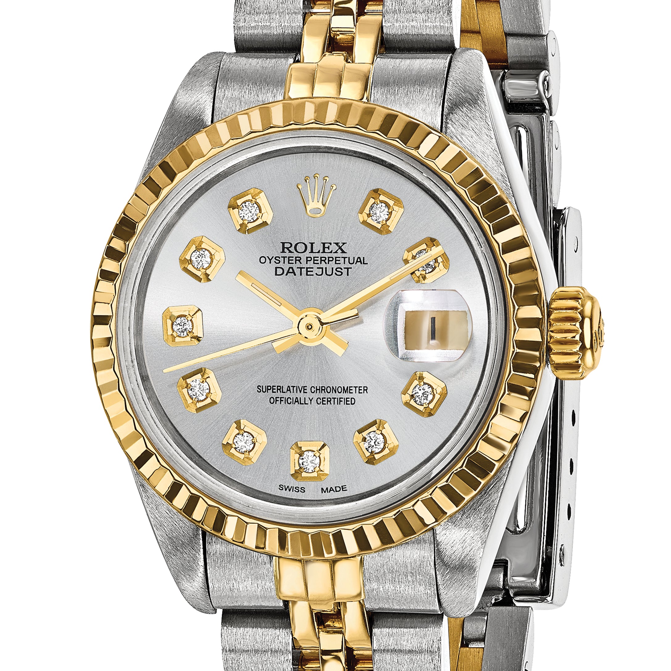 Pre-owned Independently Certified Men's Two-tone Datejust Jubilee with Silver Diamond Dial and 18K Fluted Bezel